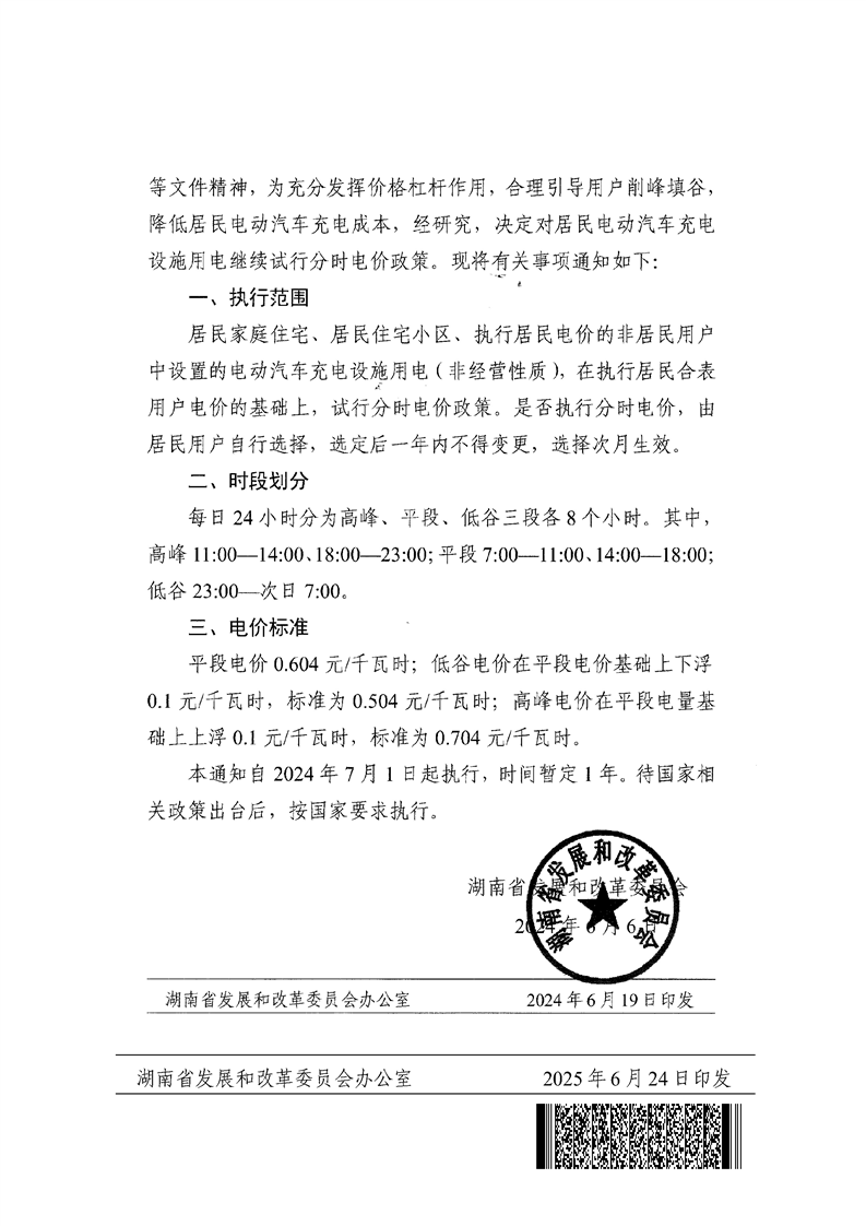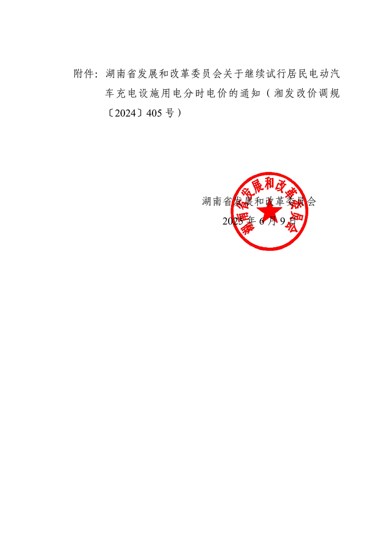 湖南省发展和改革委员会关于延长《关于继续试行居民电动汽车充电设施用电分时电价的通知》有效期的通知
