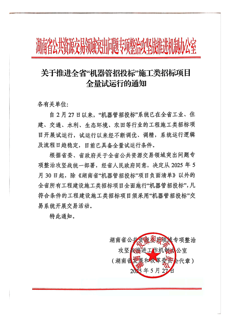 关于推进全省“机器管招投标”施工类招标项目全量试运行的通知