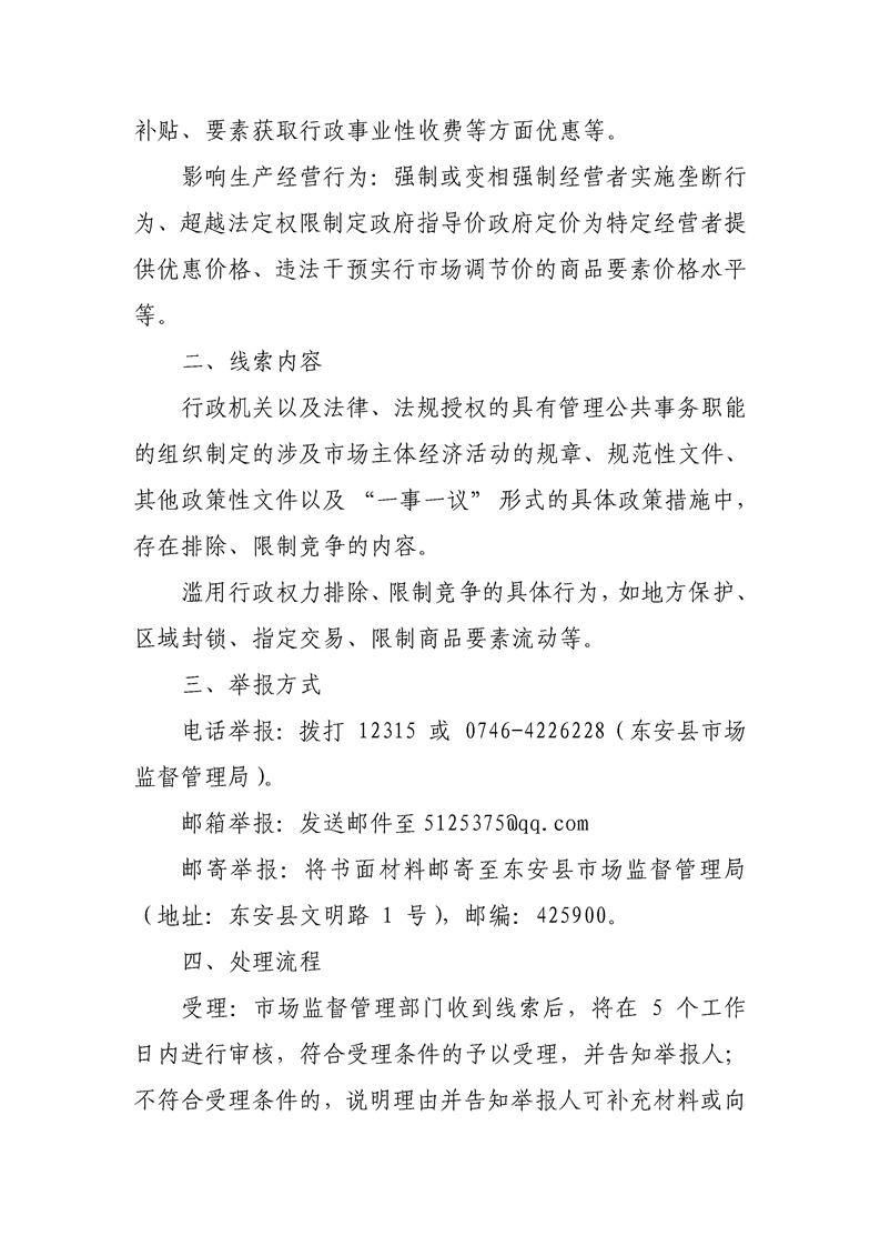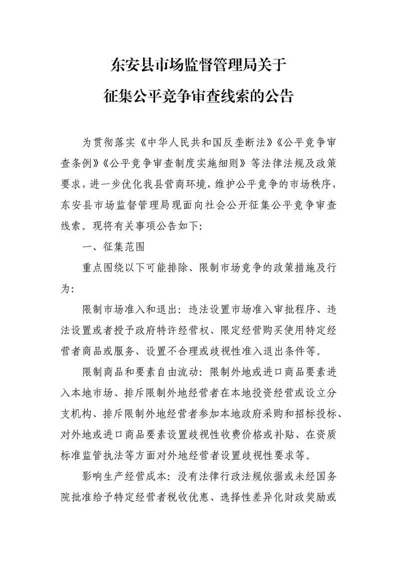 东安县市场监督管理局关于征集公平竞争审查线索的公告