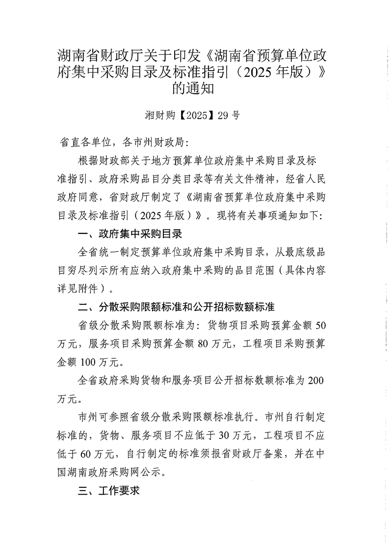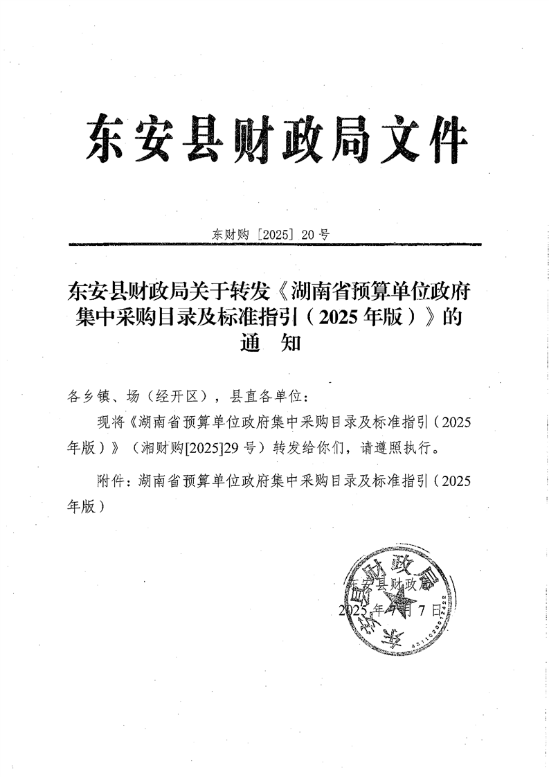 东安县财政局关于转发《湖南省预算单位政府集中采购目录及标准指引(2025年版)》的通知