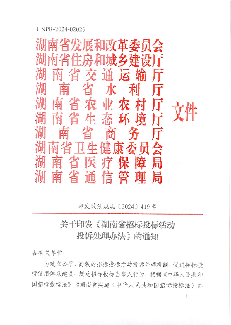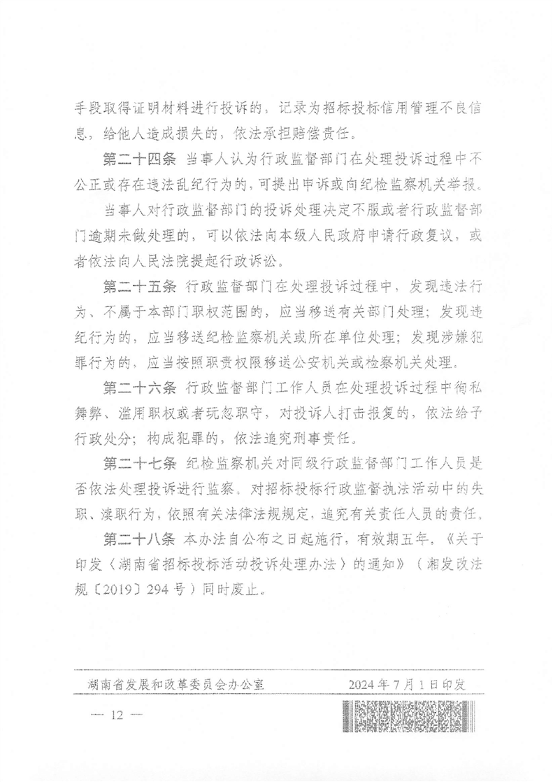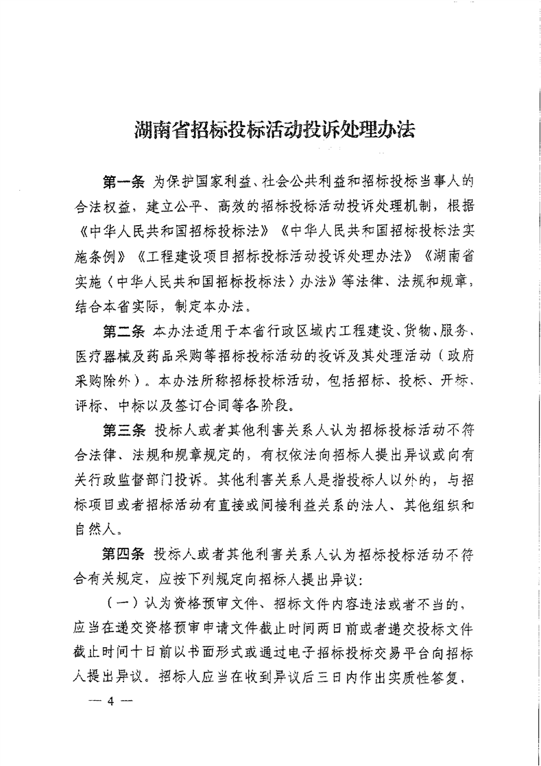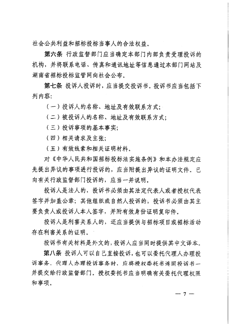 关于印发《湖南省招标投标活动投诉处理办法》的通知