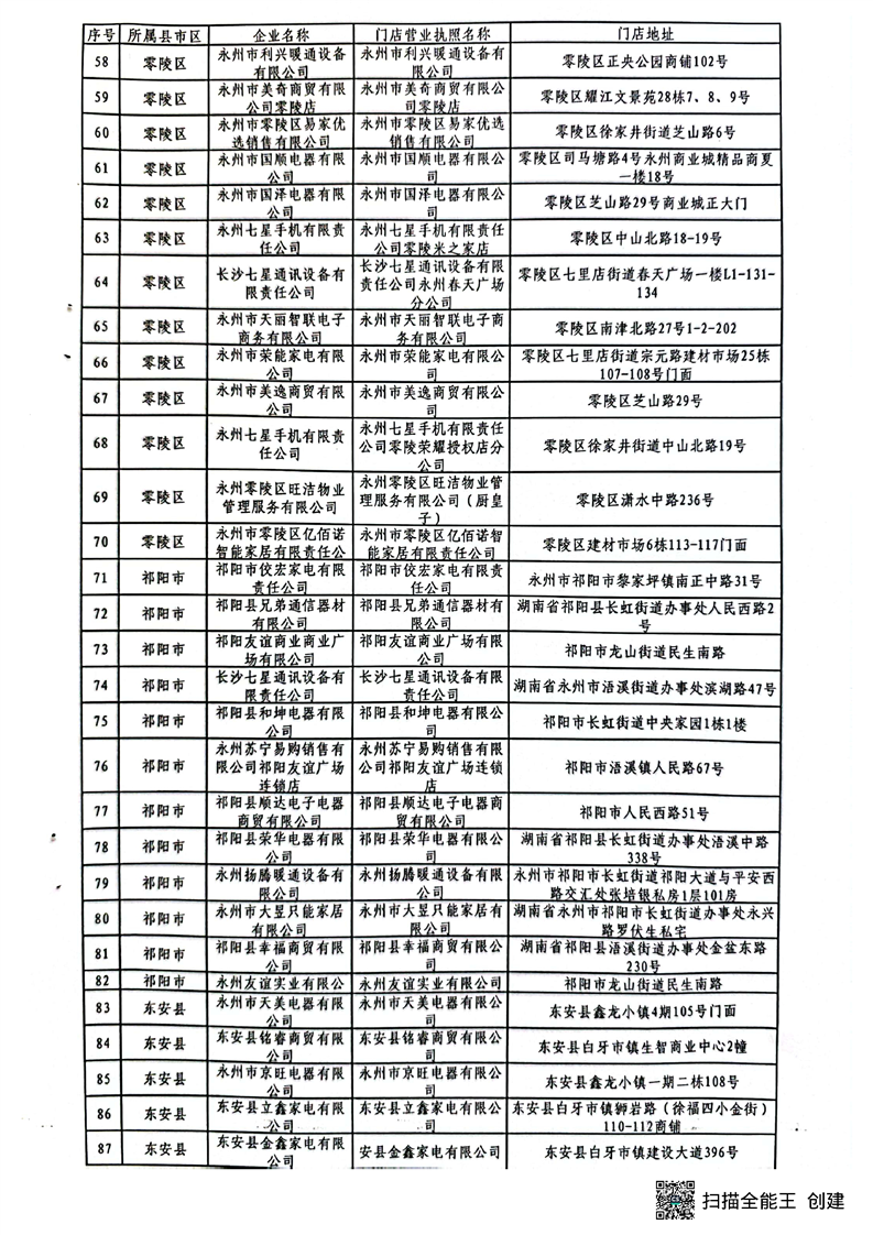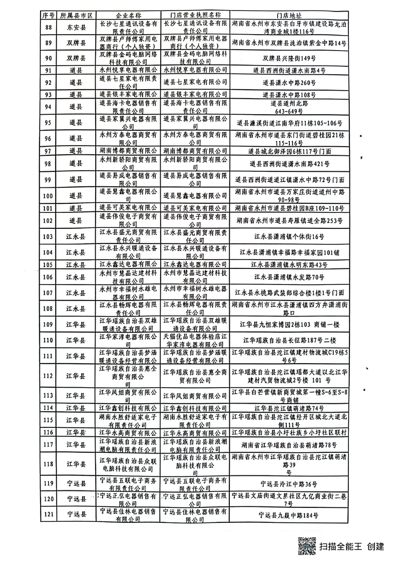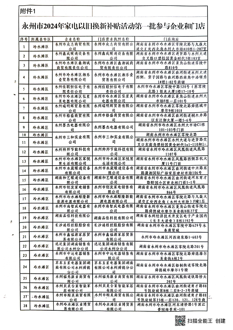 永州市2024年家电以旧换新补贴活动第一批参与企业和门店