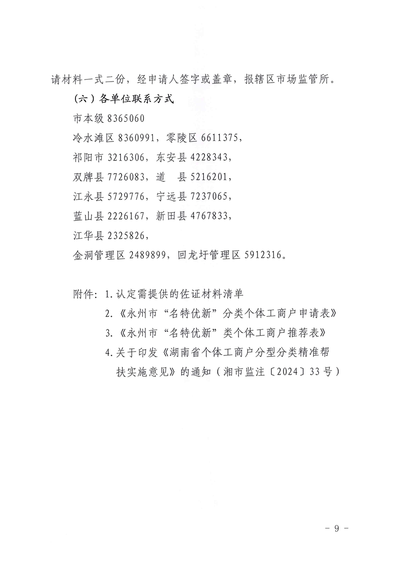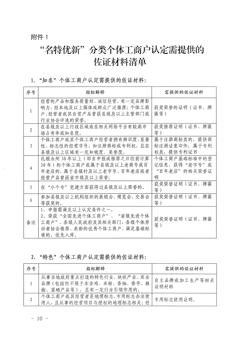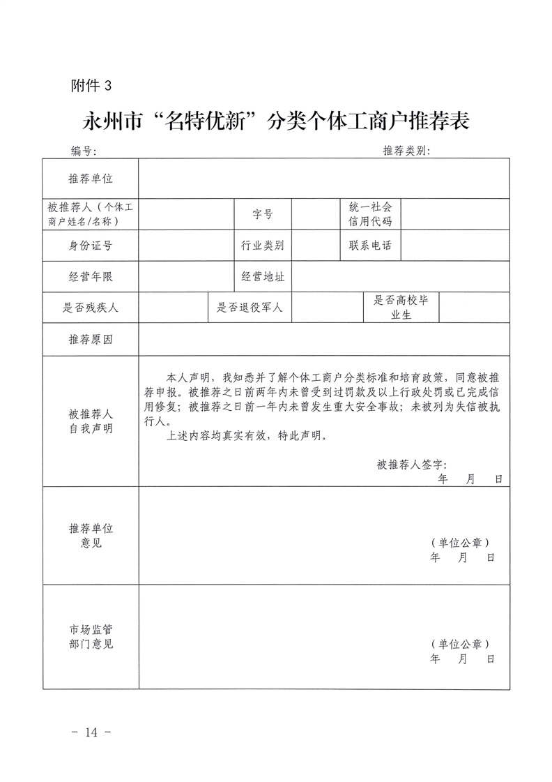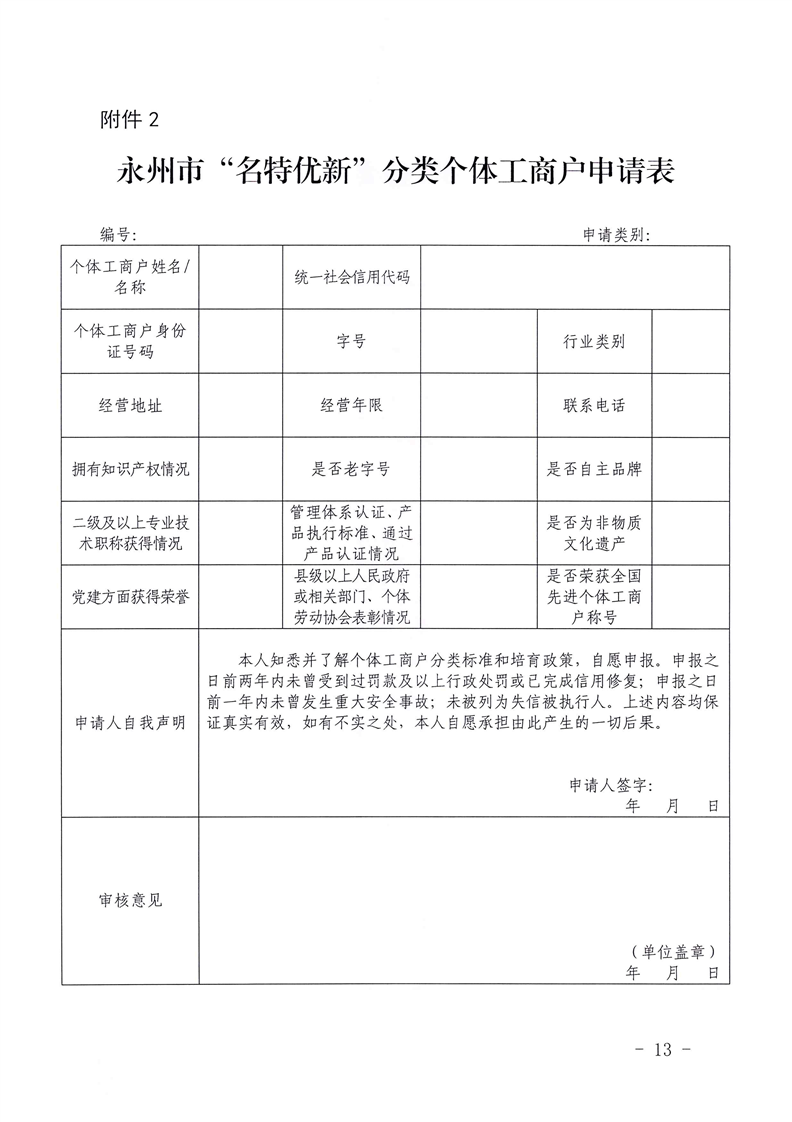 关于印发《永州市“名特优新》个体工商户分类标准(试行)》的通知