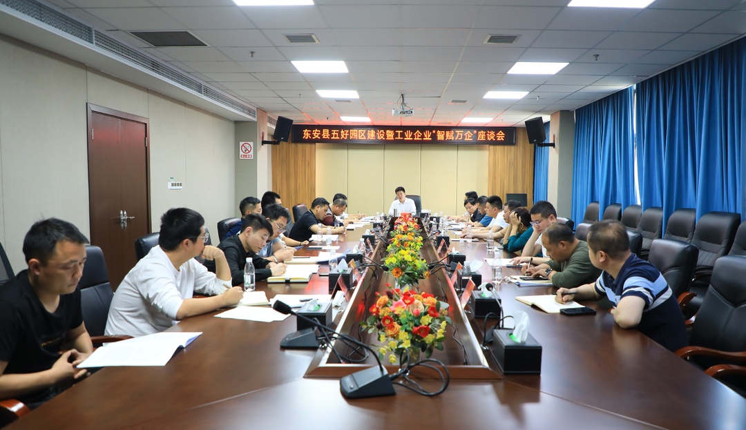 随后,蒋华主持召开五好园区建设暨工业企业“智赋万企”行动座谈会。会议传达了全省“智赋万企”行动推进大会精神。蒋华要求,要抢抓机遇,按照省、市统一安排部署,深入调研、广泛宣传、精准帮扶,帮助企业智能化改造、数字化转型,促进新旧动能转换,加速产业转型升级,实现转移与转型同步,加快建设现代化产业体系。要打造标杆企业,坚持因企施策,加强业务指导,提供智力支持,着力解决企业“不愿转、不敢转、不会转”的问题,力争转型一个、带动一批、辐射一片。要强化保障措施,加快出台奖补政策,常态化开展“送解优”行动,全力帮助企业争政策、争资金、跑订单、拓市场,引导企业大胆改、积极改、尽快改,努力推动“智赋万企”绘就东安产业升级新画卷。