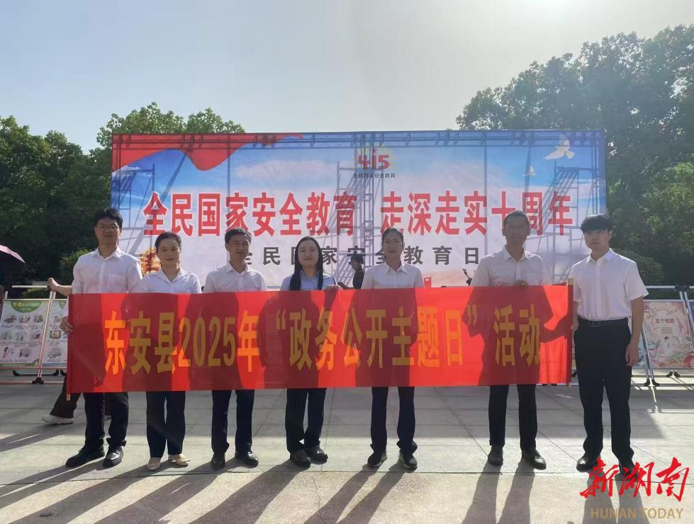 新湖南客户端讯(通讯员 唐浩钧 王亚荣)4月15日,正值全民国家安全教育日,东安县数据局在县体育坪广场举办了以“数据安全与政务服务”为主题的政务公开主题日活动。此次活动旨在提高公众对数据安全的认识,推广“湘易办”平台,介绍“高效办成一件事”的服务理念,并宣传社会信用体系建设的相关政策。