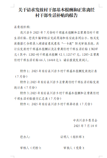 名称: 川岩乡2025年在职村干部和离任村干部7月份工资公示
