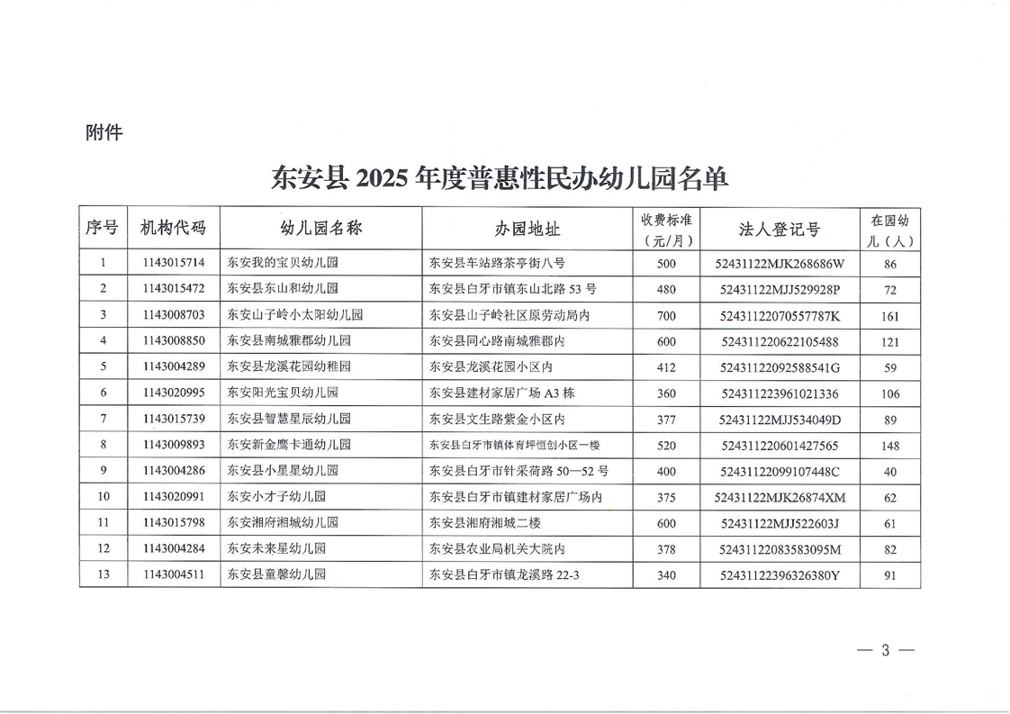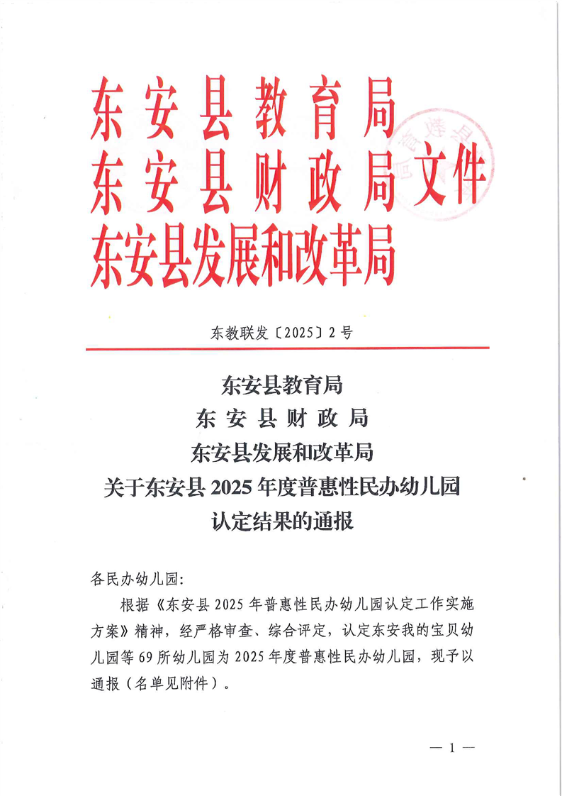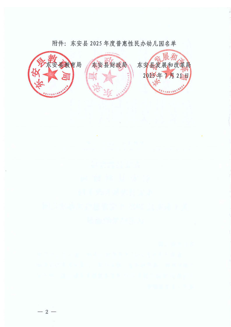 名称: 关于东安县2025年普惠性民办幼儿园认定结果的通报
