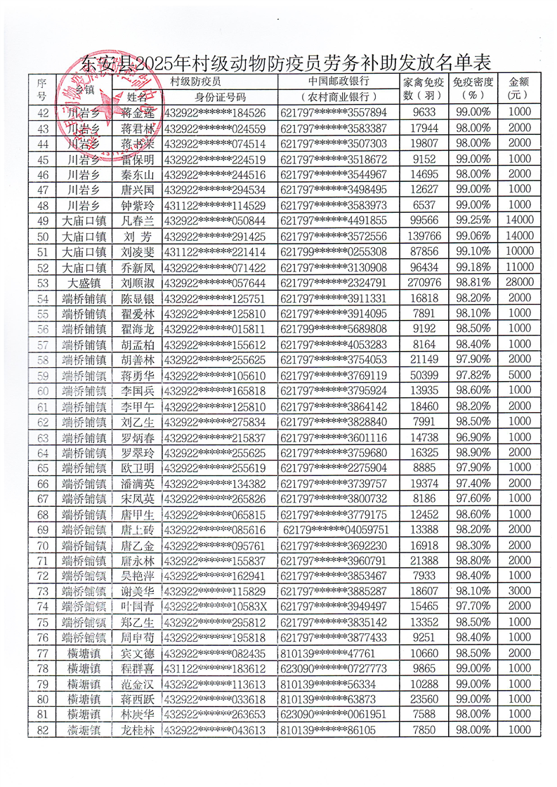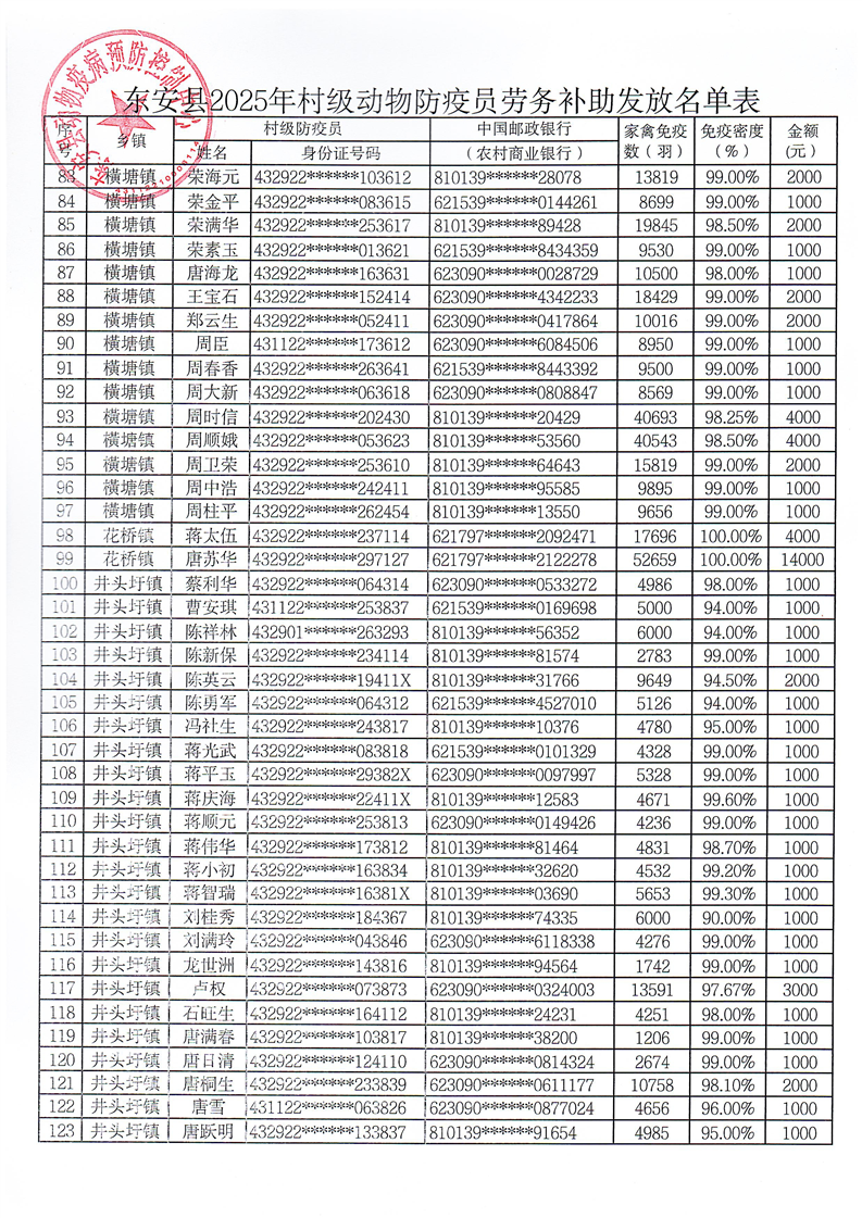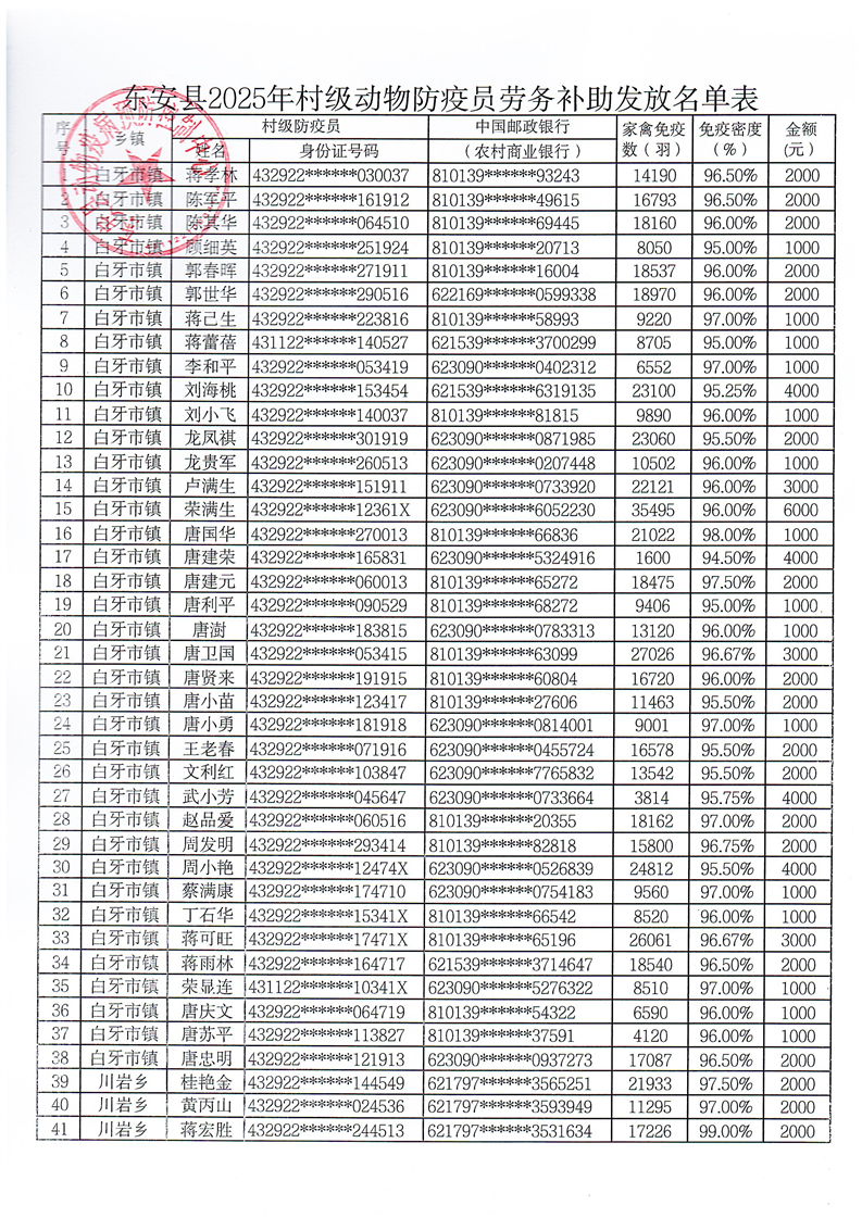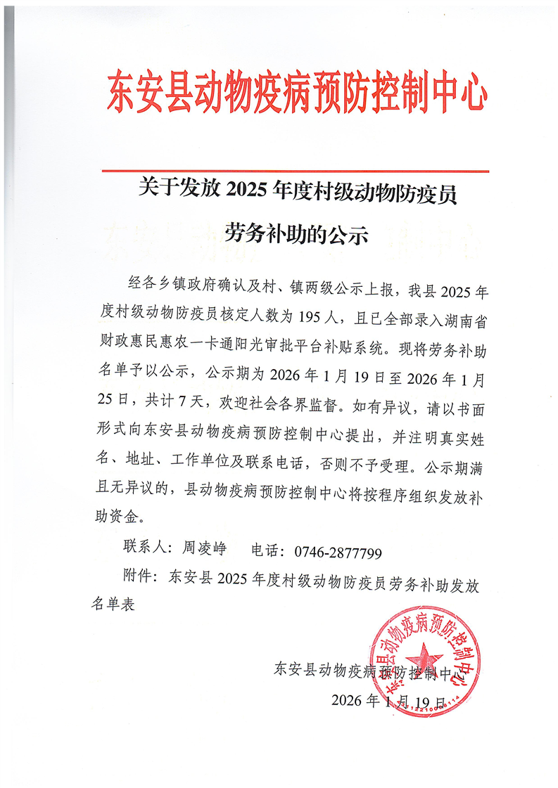 关于发放2025年度村级动物防疫员劳务补助的公示