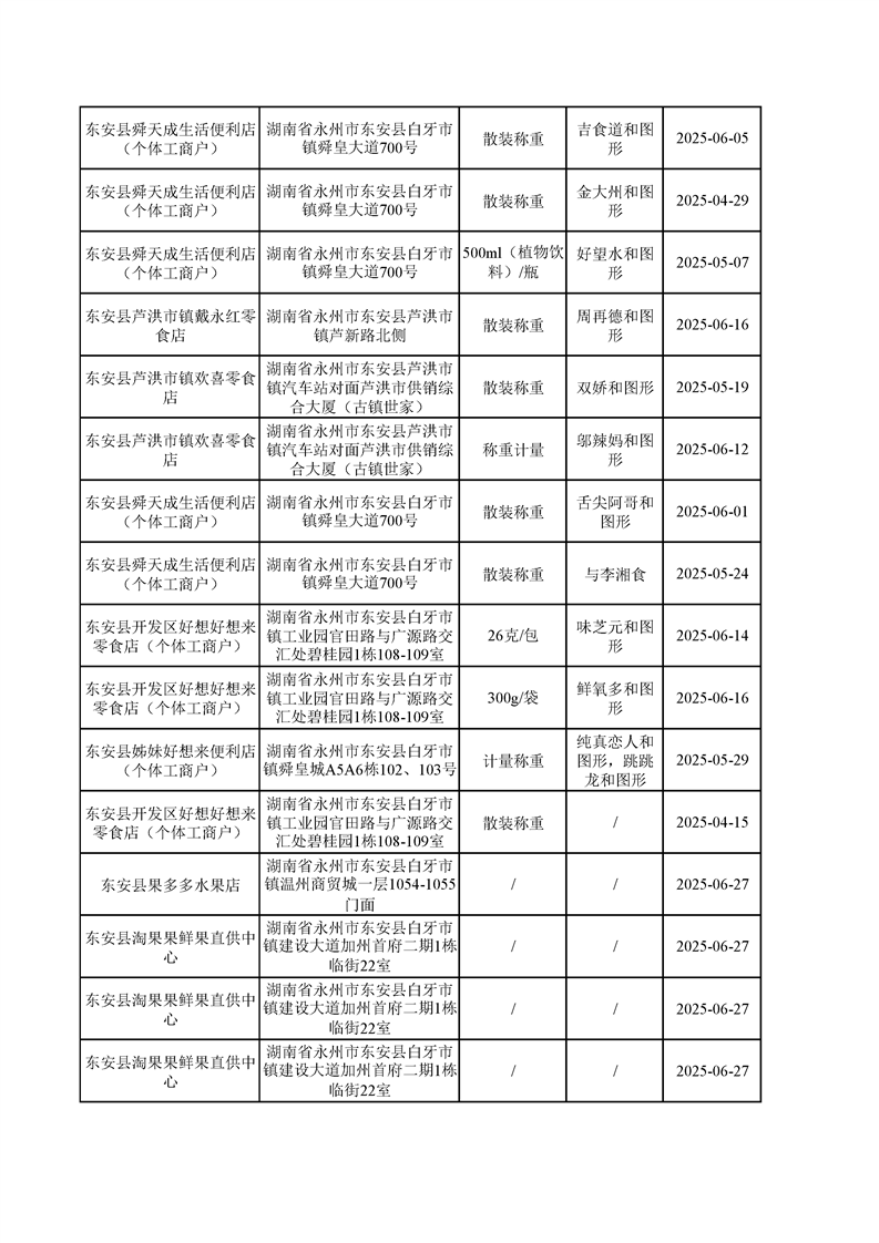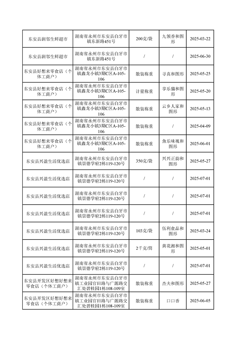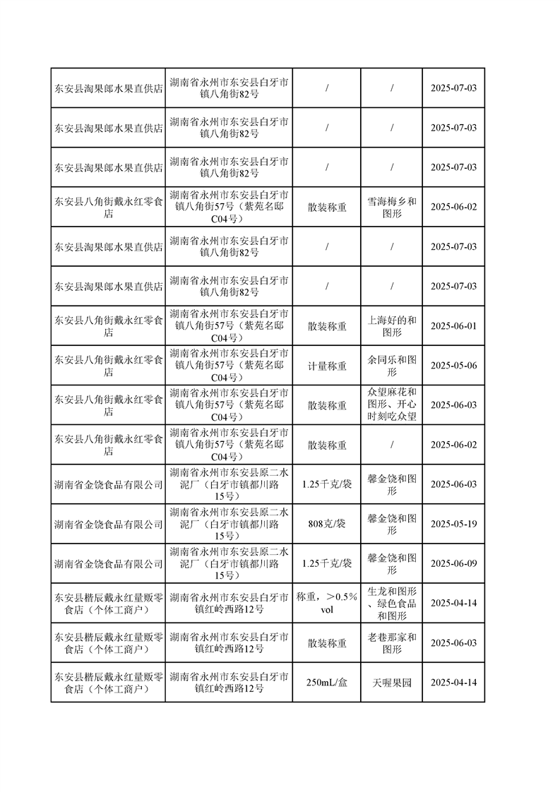 名称: 东安县市场监督管理局关于2025年第三季度东安县食品安全监督抽检情况公示(第六期)