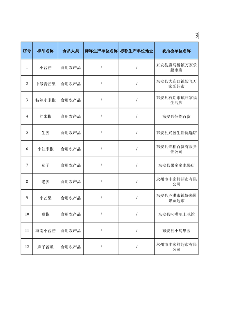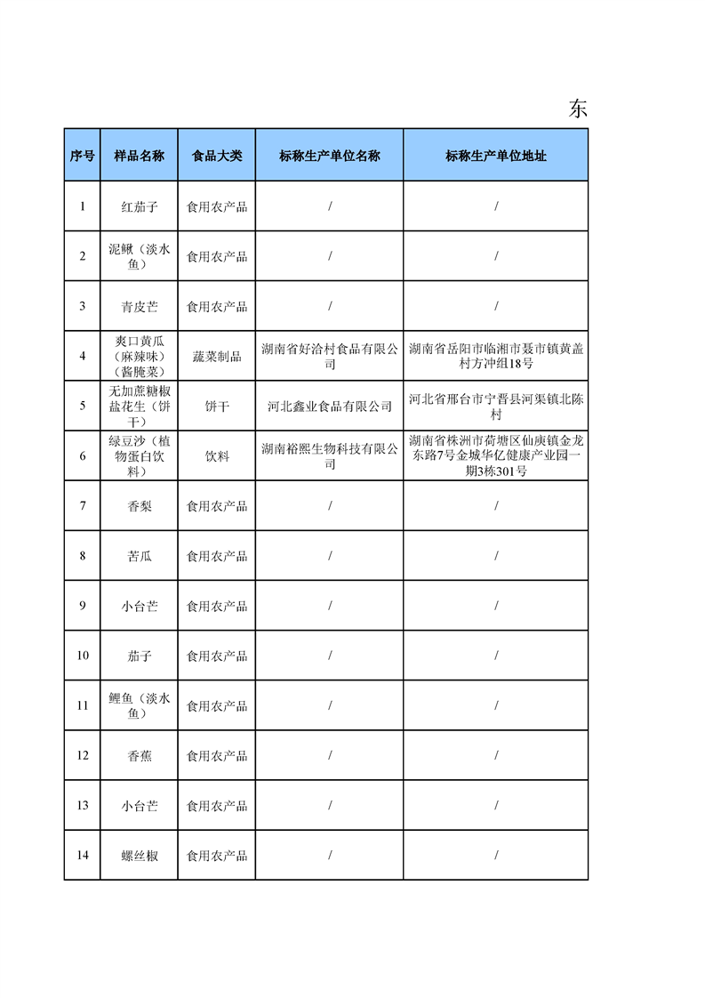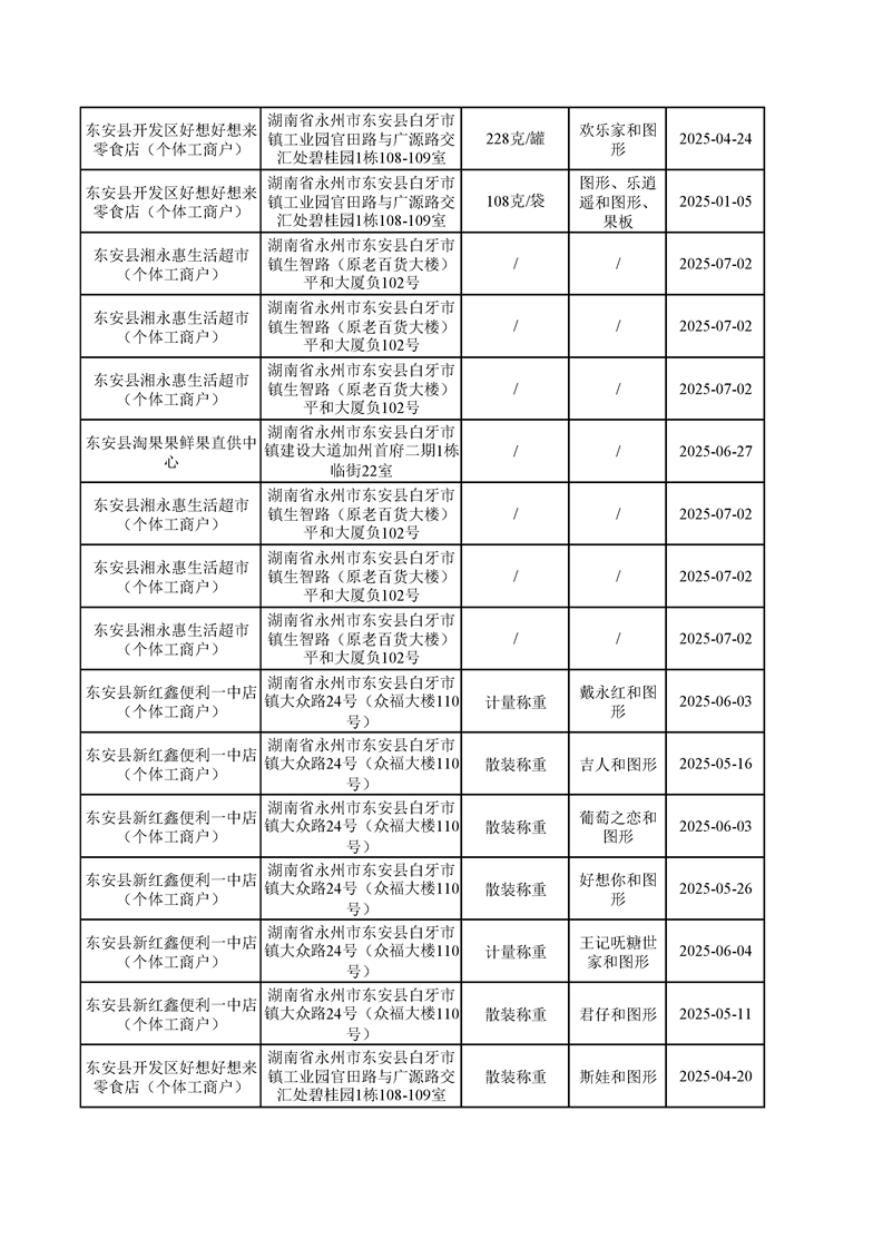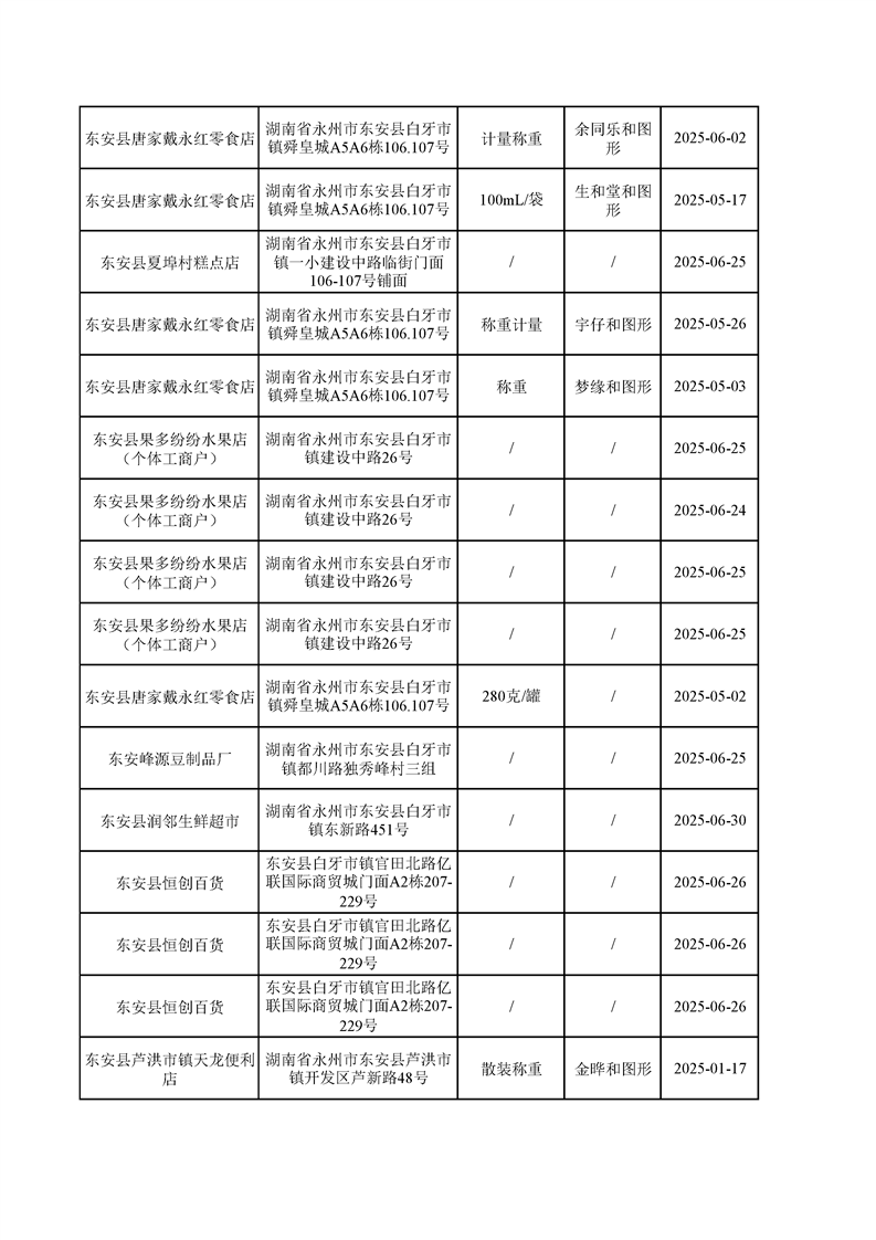 名称: 东安县市场监督管理局关于2025年第三季度东安县食品安全监督抽检情况公示(第六期)