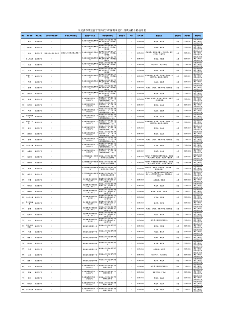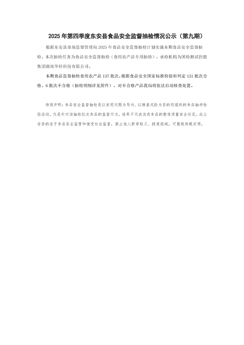 2025年第四季度东安县食品安全监督抽检情况公示(第九期)