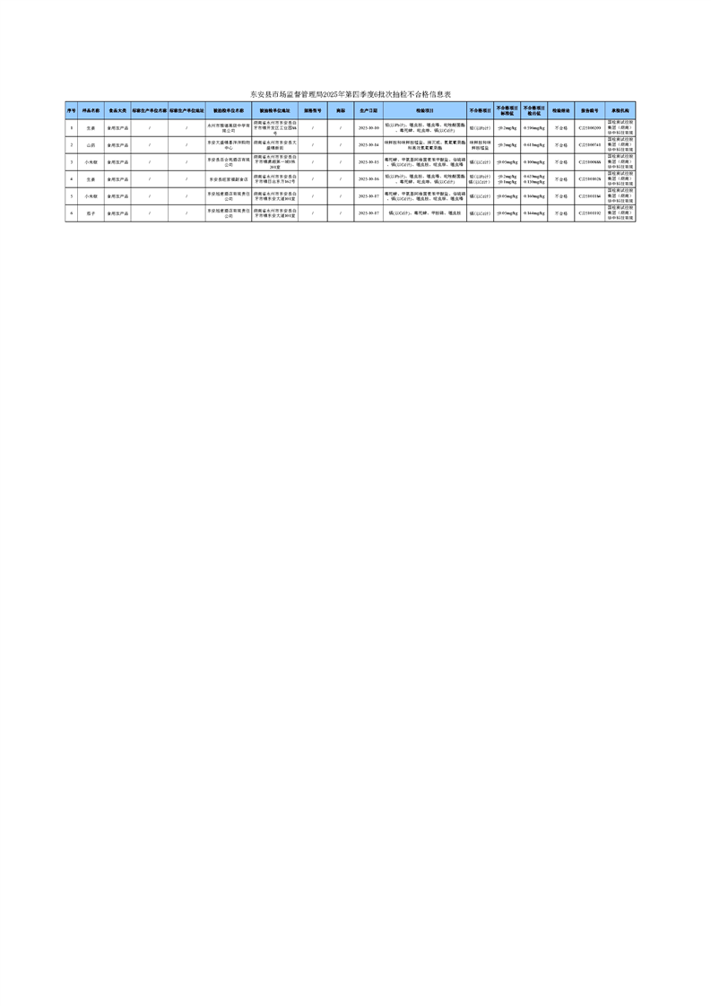 名称: 2025年第四季度东安县食品安全监督抽检情况公示(第九期)