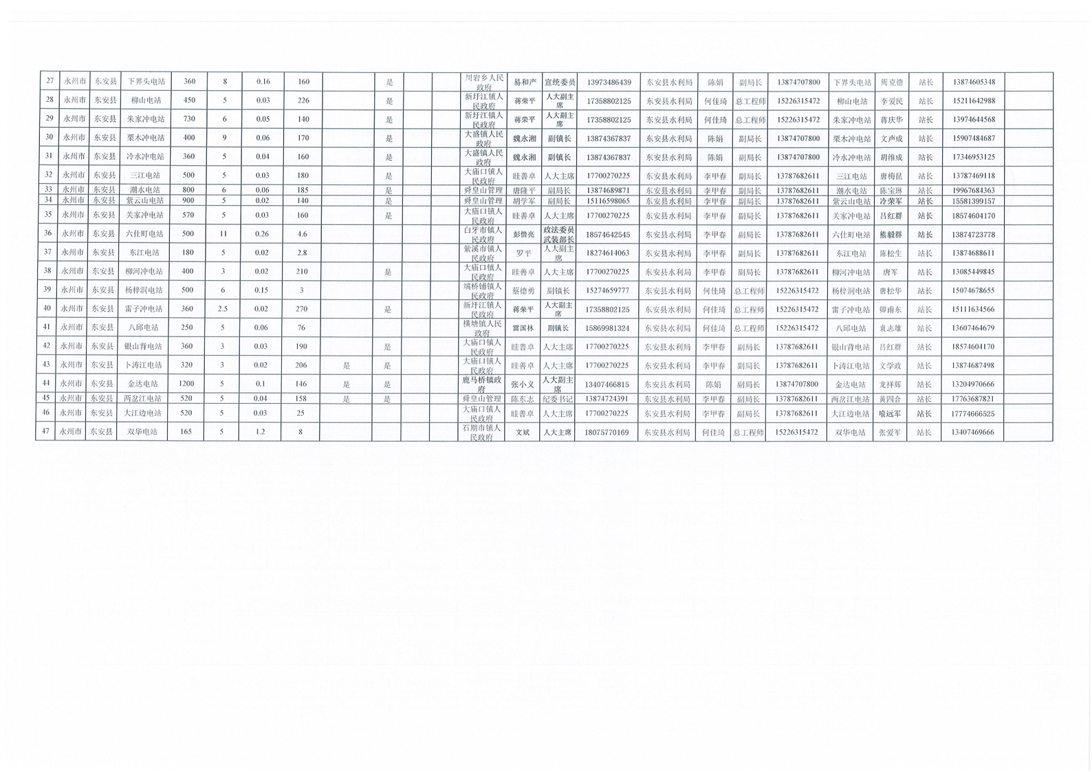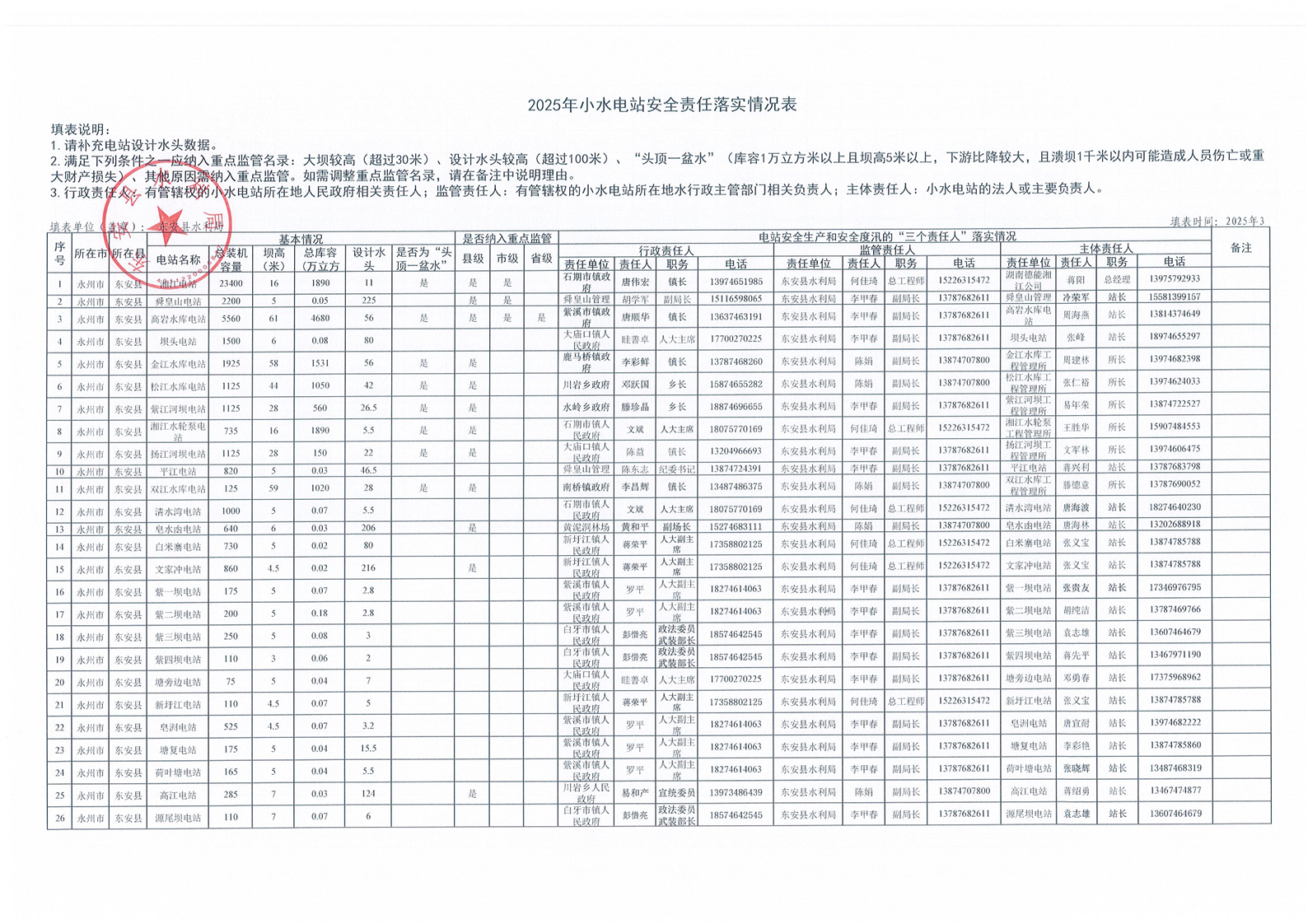 2025年永州市东安县小水电站安全责任落实情况表