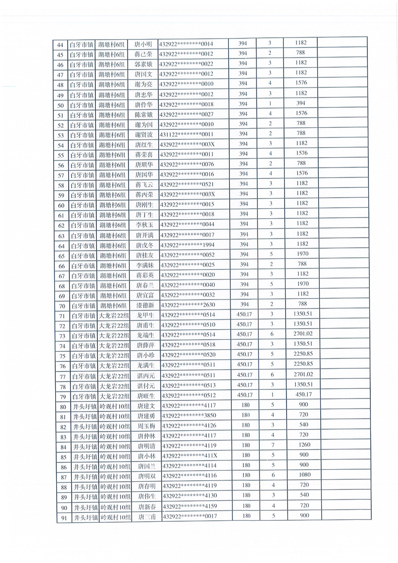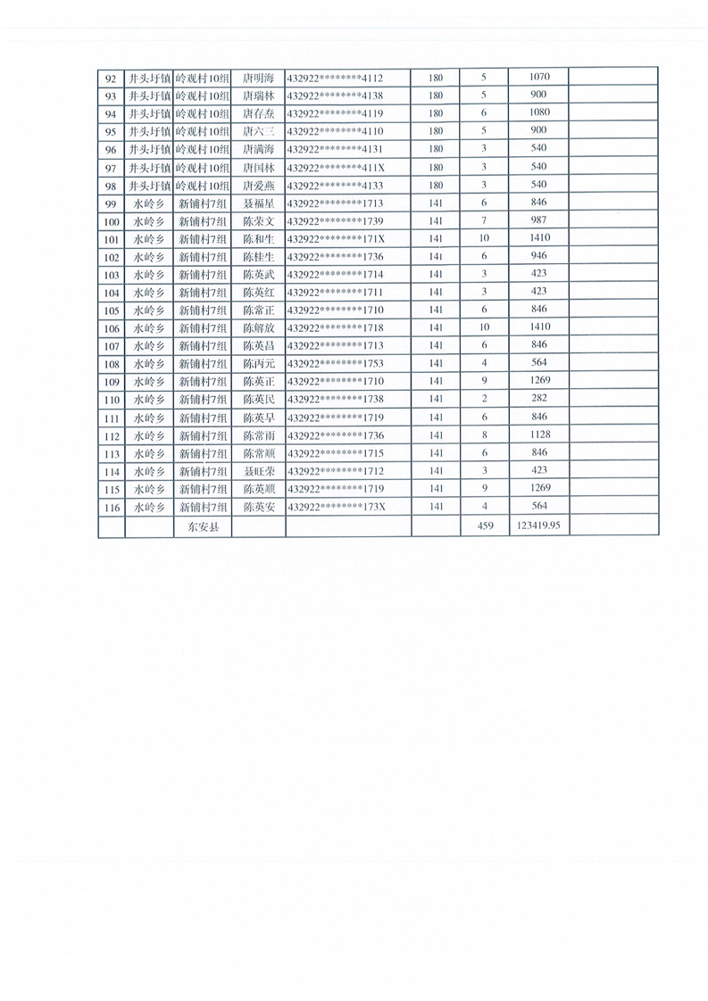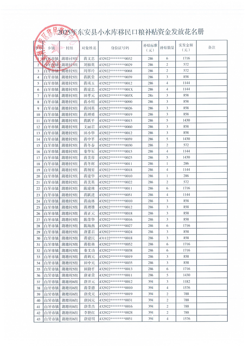 东安县水利和库区移民事务中心关于2025年小水库移民口粮补贴发放名单的公示