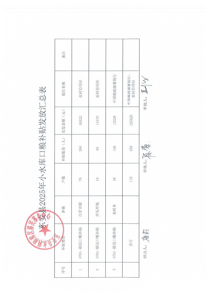 名称: 东安县水利和库区移民事务中心关于2025年小水库移民口粮补贴发放名单的公示