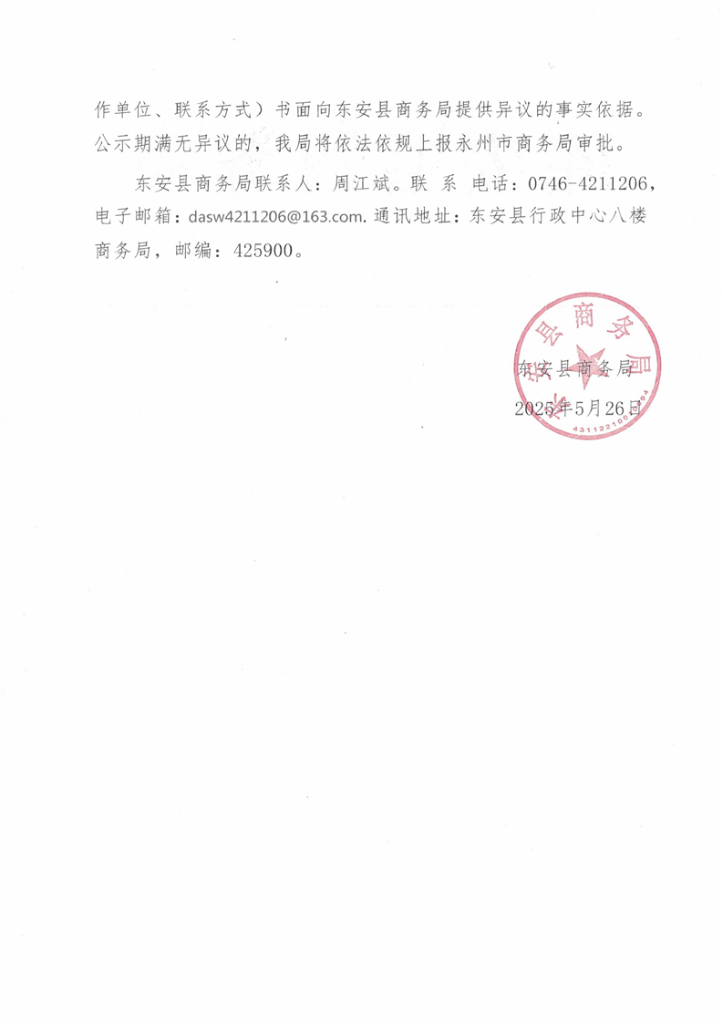 发文机关: 东安县商务局 发文日期: 2025-05-26