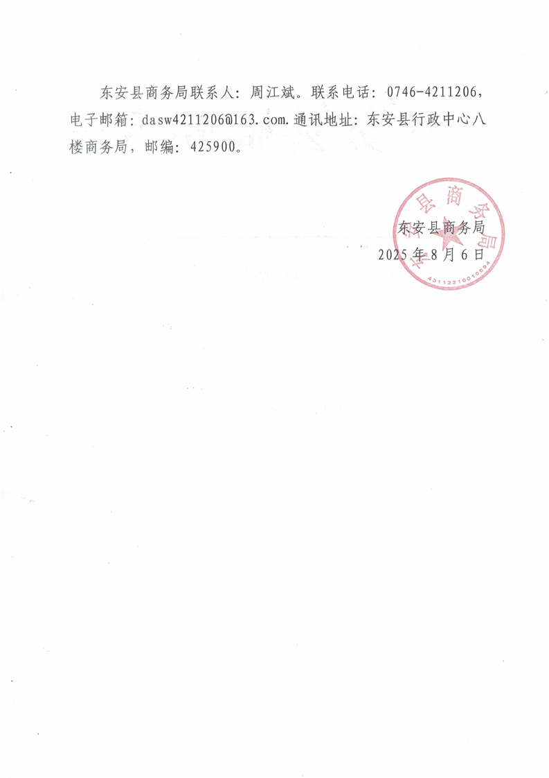 发文机关: 东安县商务局 发文日期: 2025-08-06