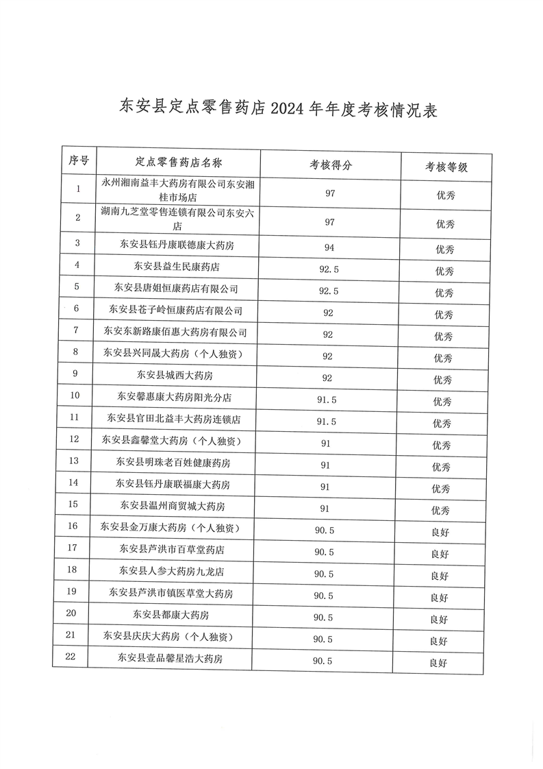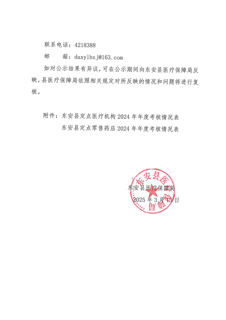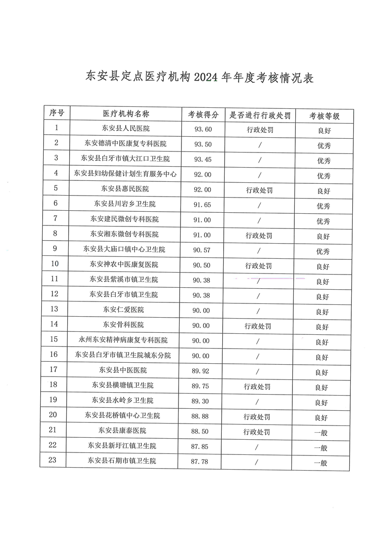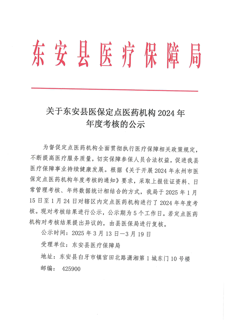 名称: 关于东安县医保定点医药机构2024年年度考核的公示