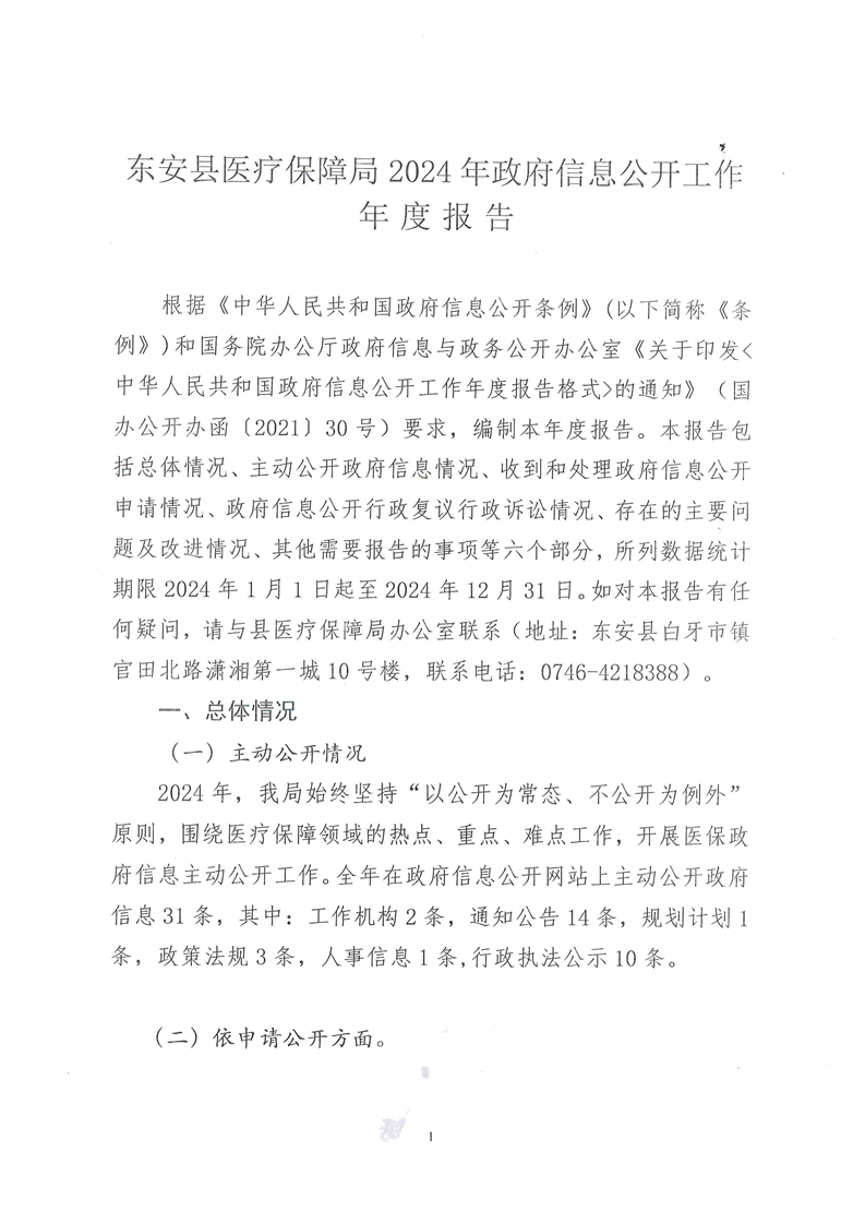东安县医疗保障局2024年政府信息公开工作年度报告