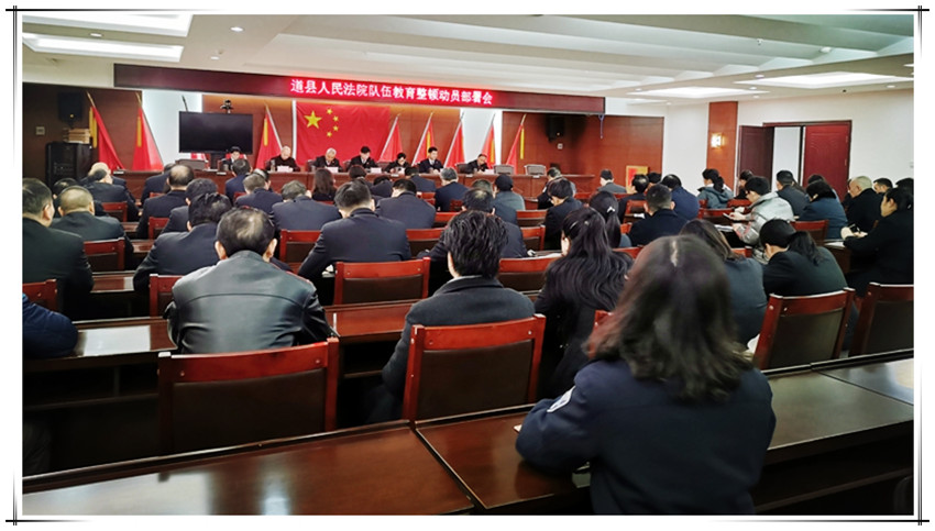 (通讯员 唐璐)3月10日上午,县人民法院召开队伍教育整顿动员部署会议。该院党组书记、院长杨斌作动员报告,县委政法委副书记李镇江到会指导,全院干警参加会议。