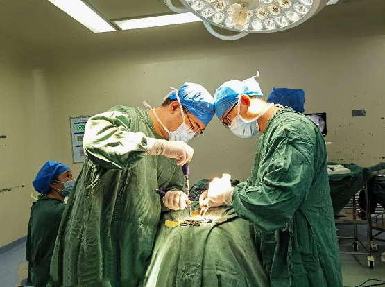 该院骨科医疗团队对患者病情综合评估,组织病例讨论,建议手术治疗。术前经细致准备,骨科主任熊绍勇组织主任医师刘五林、副主任医师唐祥成团队为患者实行手术。手术时长两小时余,创口约10CM,术中无不良反应。当天下午查房时,患者佩戴颈托已经能够坐起,情况良好,对疗效非常满意。