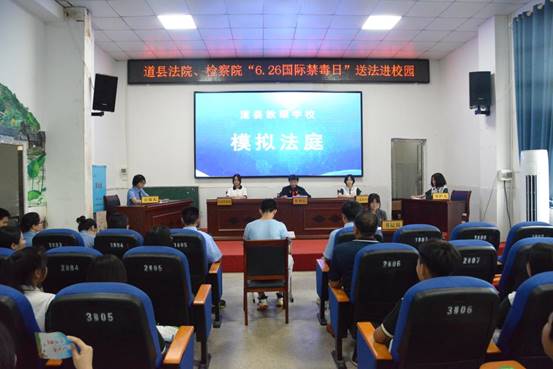 2023年6月26日是第36个国际禁毒日,为进一步加大禁毒宣传力度,增强青少年识毒、拒毒、防毒意识,6月26日下午,道县人民法院联合道县检察院一同前往敦颐学校开展了一场零距离、沉浸式的刑事模拟法庭活动。