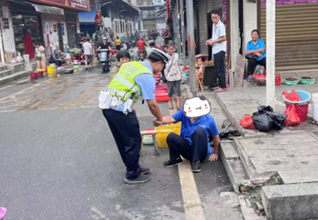 9月21日,道县公安局交警大队濂溪中队民警在执勤中将一名不慎摔倒的八旬老人小心搀扶起来的暖心一幕,受到周围群众的好评。