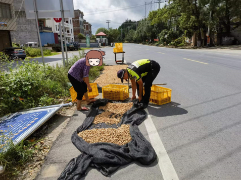 9月11日上午10时许,道县公安局交警大队民警巡逻到G357线道县仙子脚镇交叉路口时,发观一段公路的路面晒着花生,前后还用木桌等障碍物挡住,占去公路部分面积,影响道路通行秩序,存在严重的道路交通安全隐患。见状,民警立即下车了解情况。经走访询问,民警找到了占路晒花生的一位老年妇女,并向她宣讲公路上晒花生的危害性,告知她如因此发生交通事故,还要承担相应责任,劝导她把花生搬离道路,选择合适的地方晾晒。经民警教育,该村民同意将花生搬离。随后,民警帮助收起花生,及时搬出路面,消除了安全隐患。