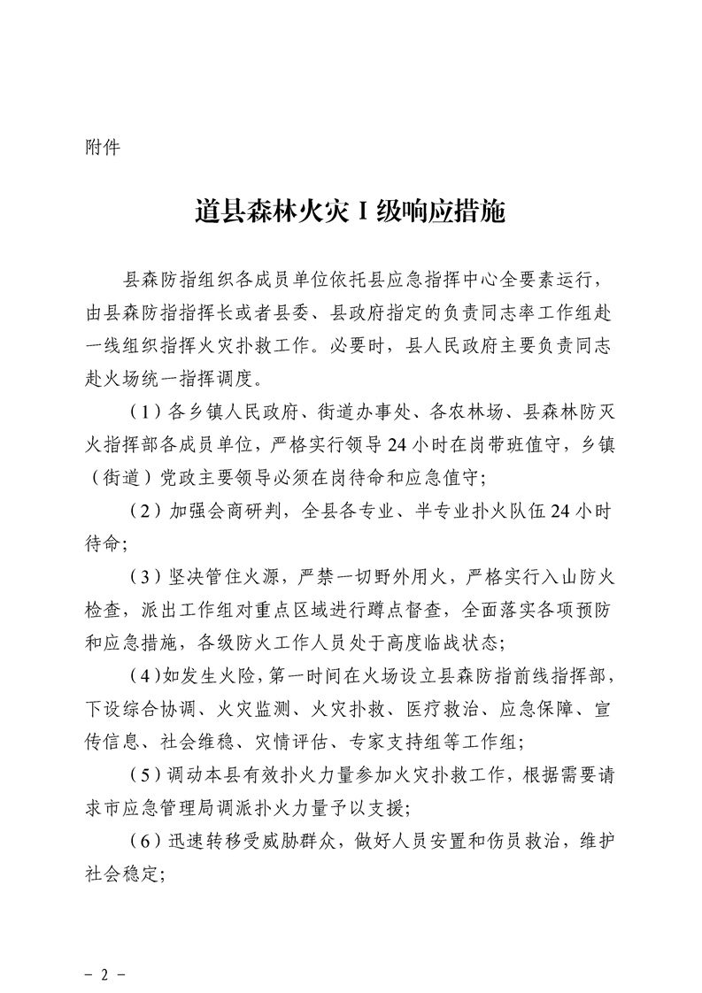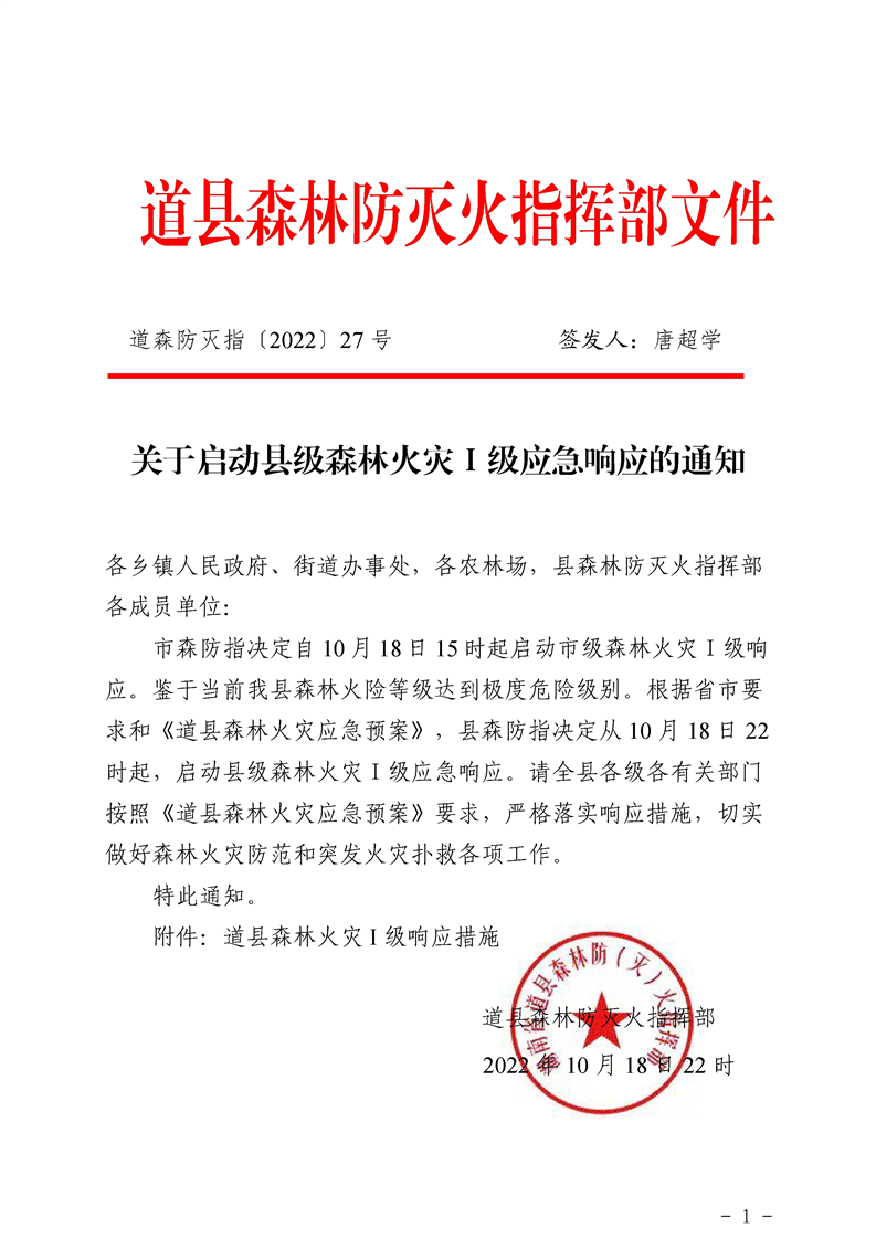 道县森防指关于启动县级森林火灾Ⅰ级响应的通知