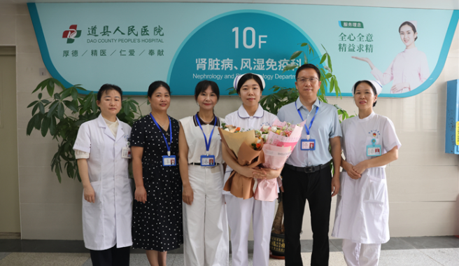 “我当时什么也没想,立马跑上前去看,我一边请她老公协助我将她翻身过来平躺着,然后一边快速地问他,她平常有没有什么疾病,比如说癫痫,刚才有没有吃过什么东西?她丈夫都回答我说没有,就是突然就这样了。”道县人民医院肾内科护士成琳说道。