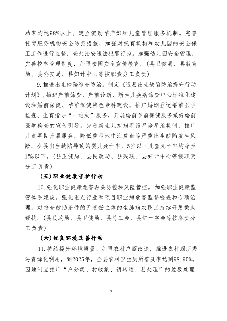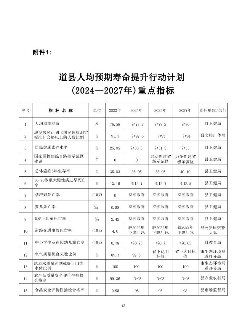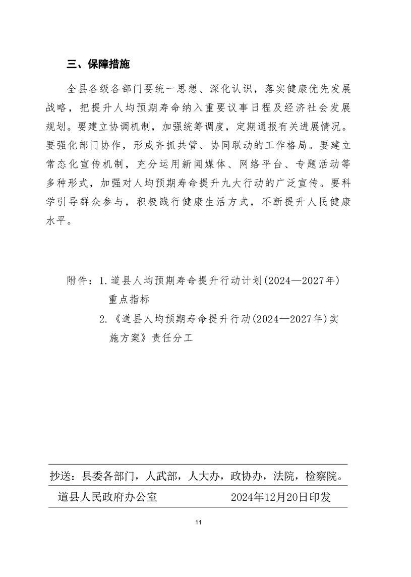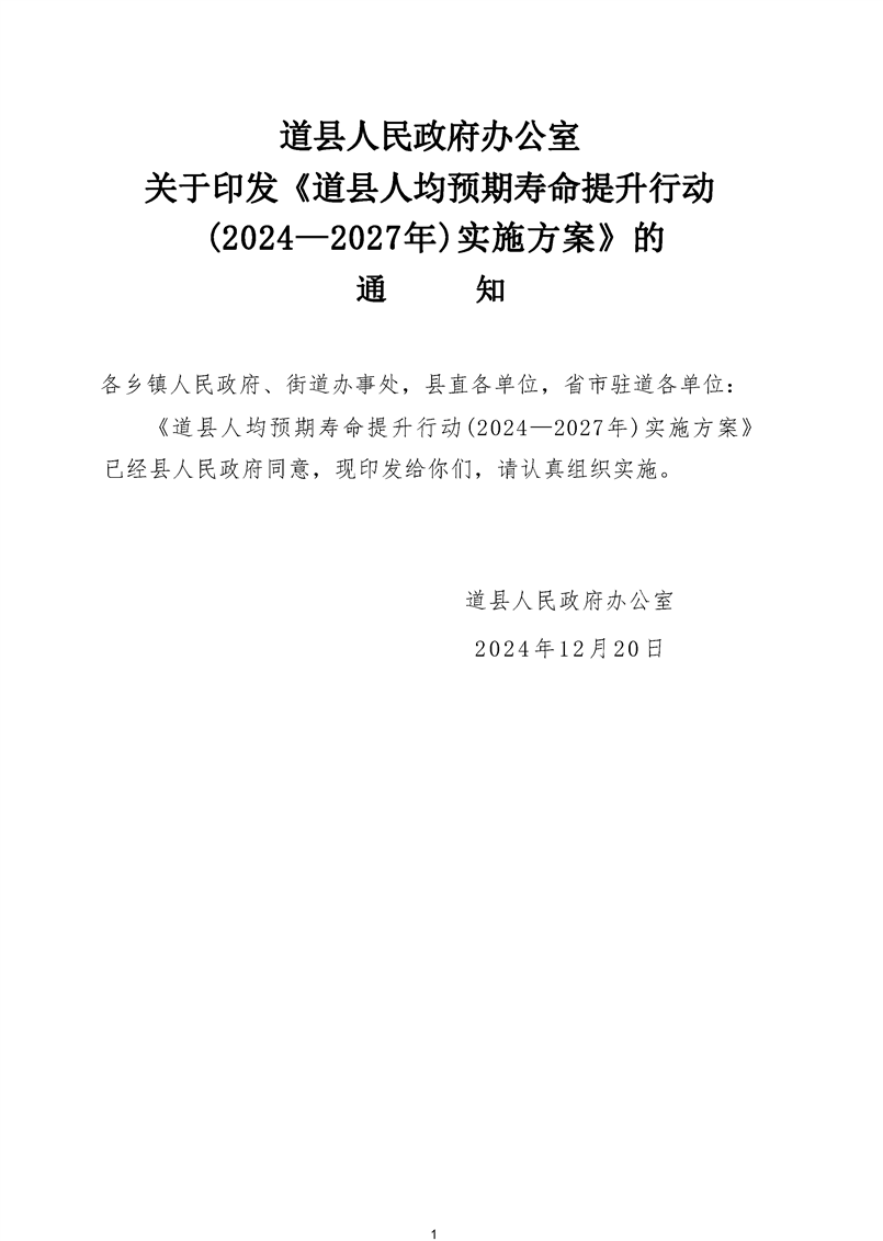 道县人民政府办公室关于印发《道县人均预期寿命提升行动(2024—2027年)实施方案》的通知