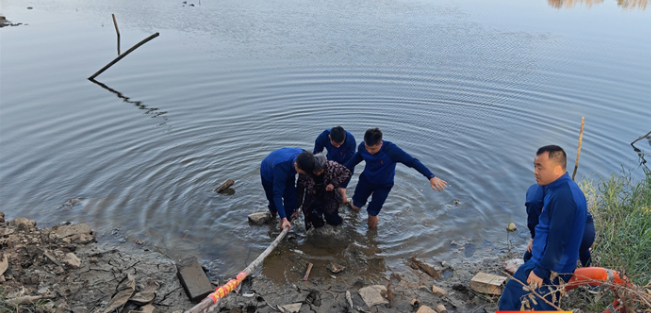 11月25日下午3点33分,一阵急促的呼救声打破了宁静。在道县消防救援大队营区对面的一处池塘,一名老人意外落水。消防救援人员接到求助后,携带救生装备,在1分钟内就赶到了现场。当时,老人正站在齐腰深的冰冷池水中,身体因寒冷与恐惧不停颤抖,双手紧紧抓着岸边的一根竹竿,无法动弹。