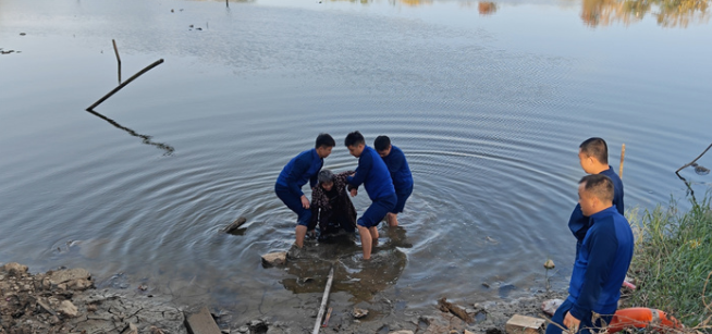 道县:老人不慎滑入池塘 消防3分钟成功救援
