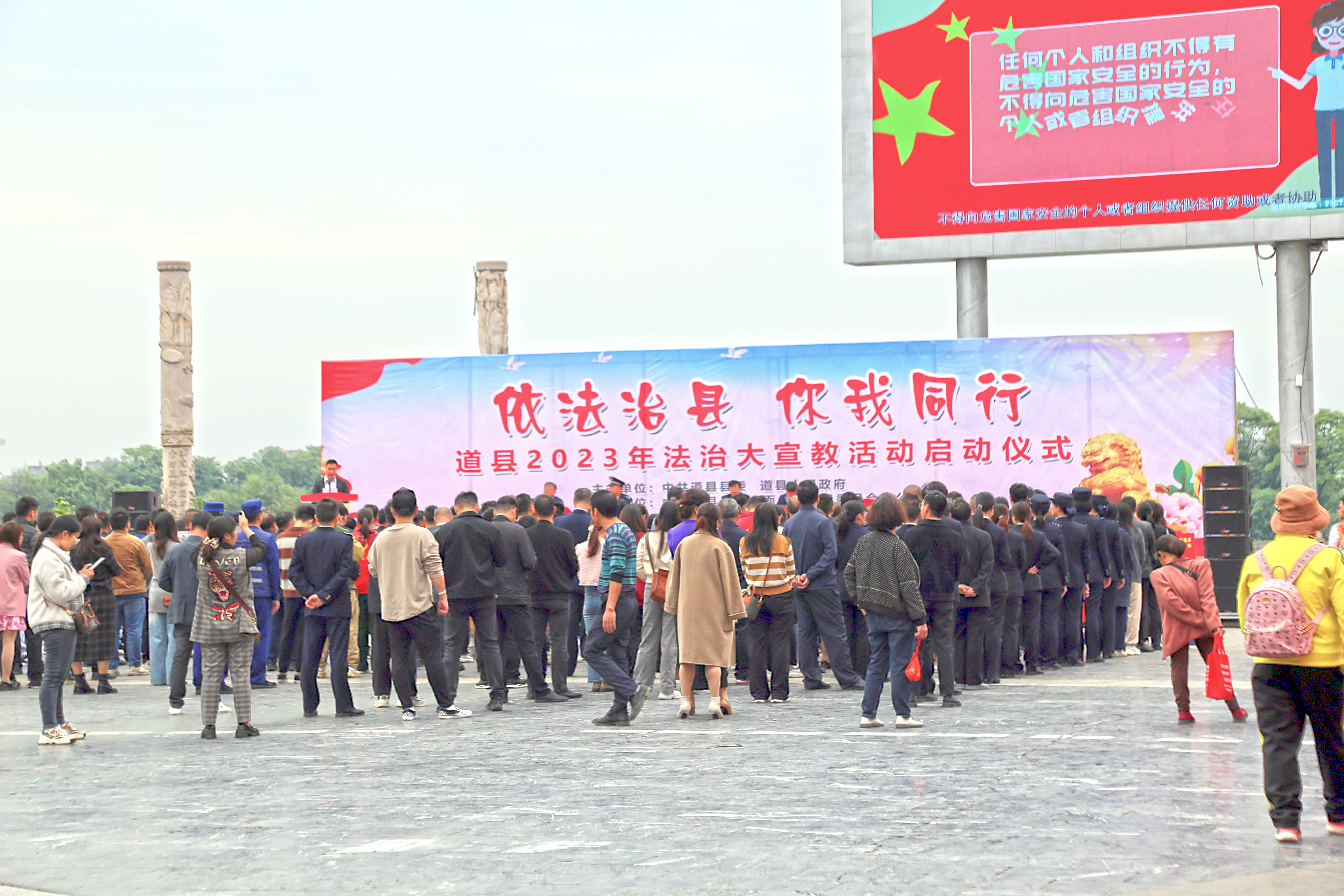 为深入宣传消防法律法规,普及消防安全知识,进一步提高全民消防安全意识,4月27日上午,道县消防救援大队积极响应道县人民政府组织的“依法治县你我同行”法治大宣教活动启动仪式,并在周敦颐广场开展消防宣传活动,向广大居民普及消防法律法规知识,为广大群众送去消防“平安符”。