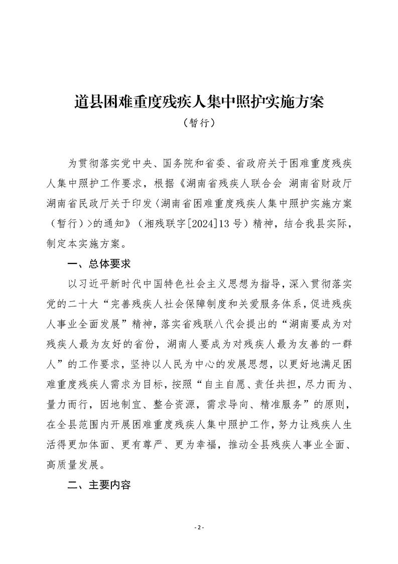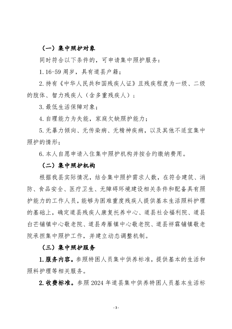 《道县困难重度残疾人集中照护实施方案》(暂行)政策解读