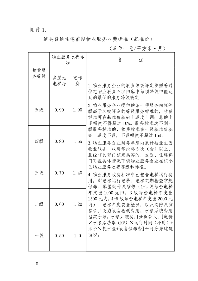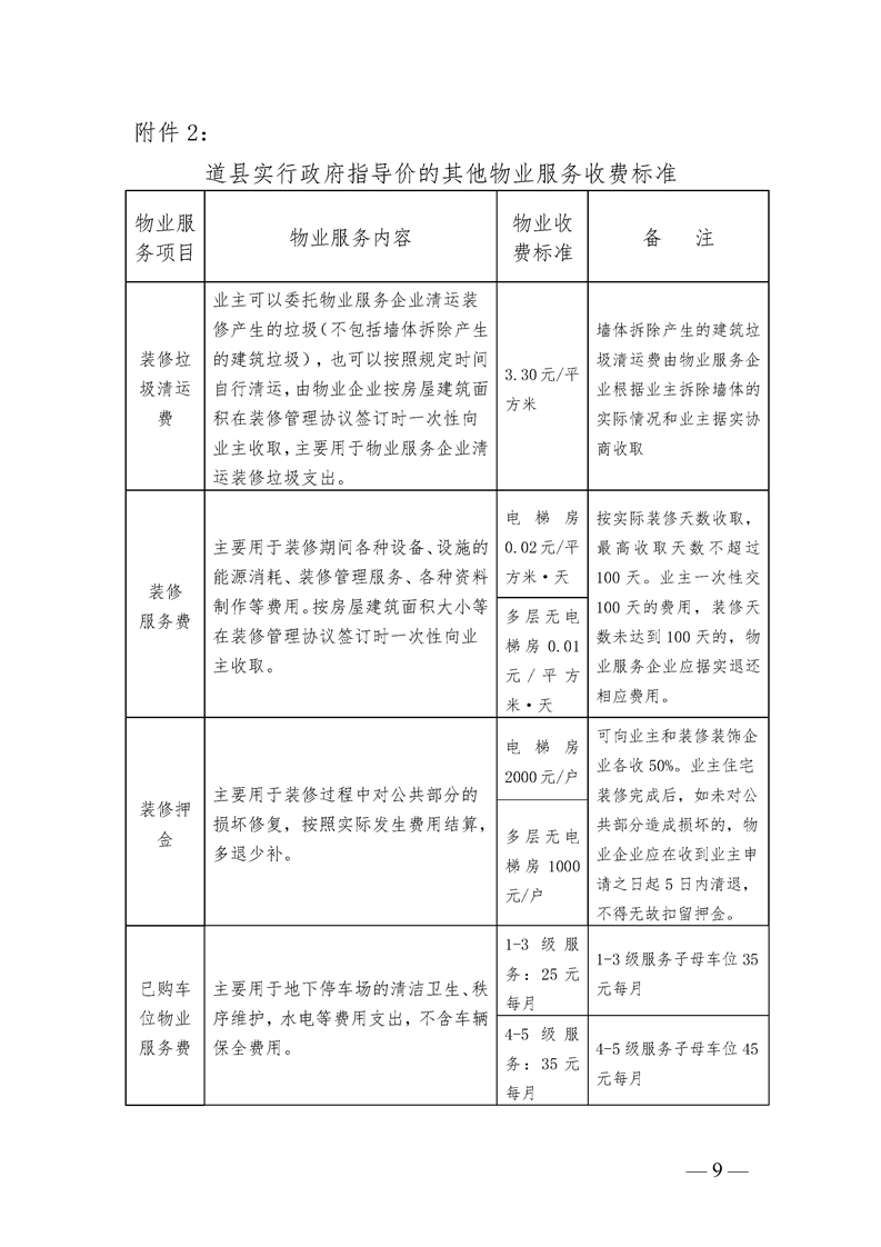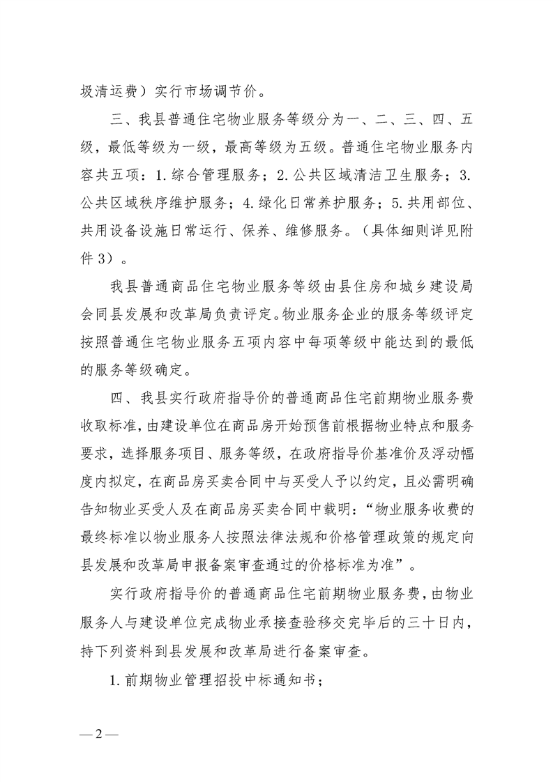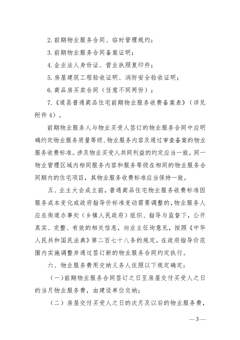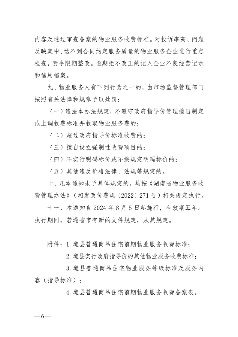 关于规范我县物业服务收费管理的通知(道发改价费[2024]2号)