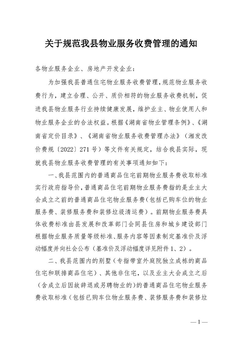 关于规范我县物业服务收费管理的通知