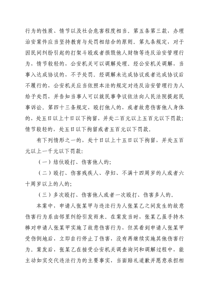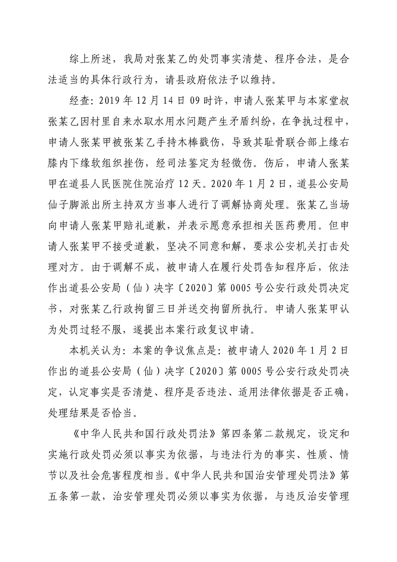道府行复【2020】11号张志文诉公安局行政复议决定书