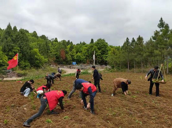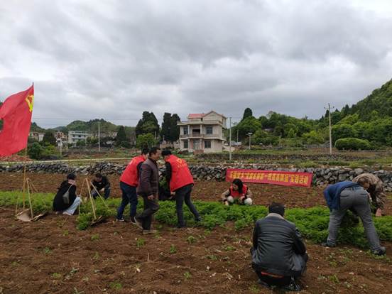 这是乐福堂乡开展党史学习教育“我为群众办实事”实践活动。乡党委有关负责人介绍,乡政府组织机关党员干部志愿者来到清塘坪村,帮助缺劳力的蒋全菇家庭栽种青蒿,以实际行动助力乡村振兴。