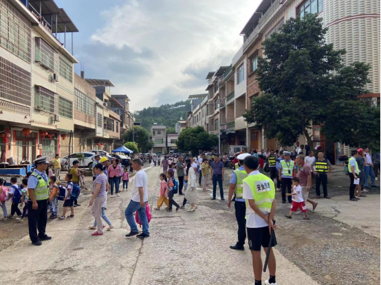为切实加强秋季新学期道路交通安全管理工作,维护好辖区校园及周边道路交通秩序,9月4日,道县蚣坝镇政府联合派出所民警、交警集中对蚣坝镇中心小学放学时间开展交通管制,引导前来接送学生的家长将车辆相应停车地点,防止出现拥堵现象,全力护航开学季交通安全。