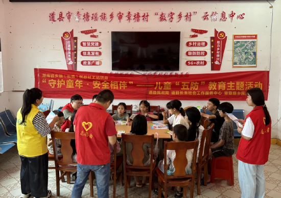 7月22日,道县审章塘瑶族乡审章塘村举办了一场主题为“守护童年·安全相伴”的儿童“五防”安全教育活动。 此次活动在道县民政局的指导下,由道县长禾社会工作服务中心联合审章塘瑶族乡民政社工站、综治办及团委共同举办,旨在增强辖区留守儿童的自我保护意识和能力,为他们撑起一把坚实的安全保护伞。