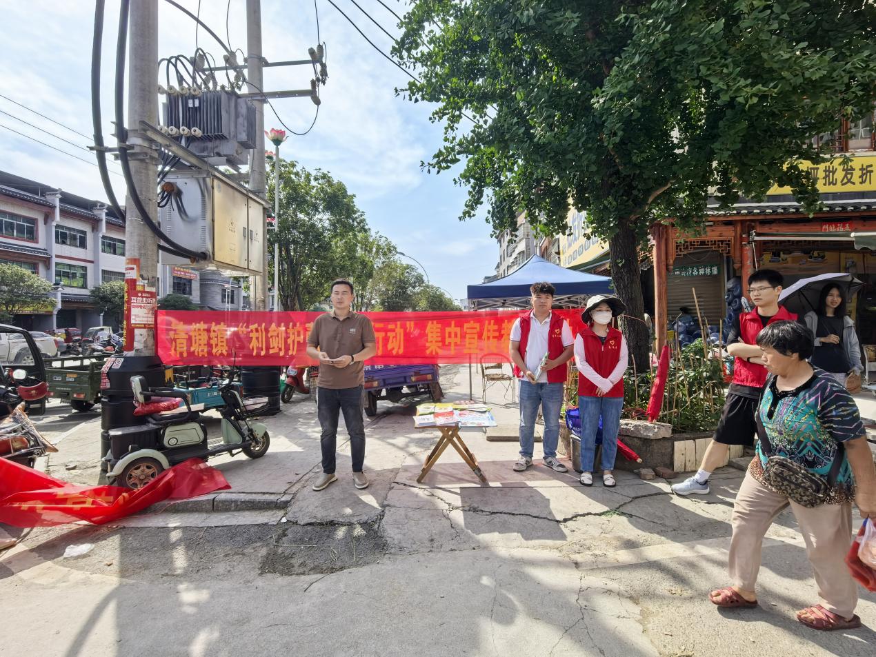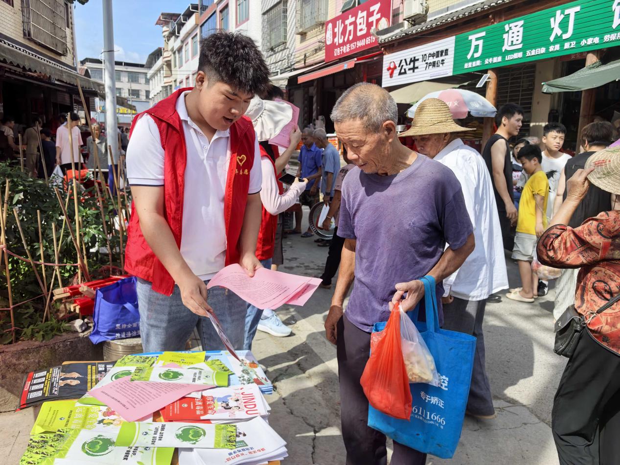2025年7月15日,清塘镇组织平安法治办、大学生志愿者利用赶集日为契机开展防性侵、禁毒、反电诈等法治宣传活动。
