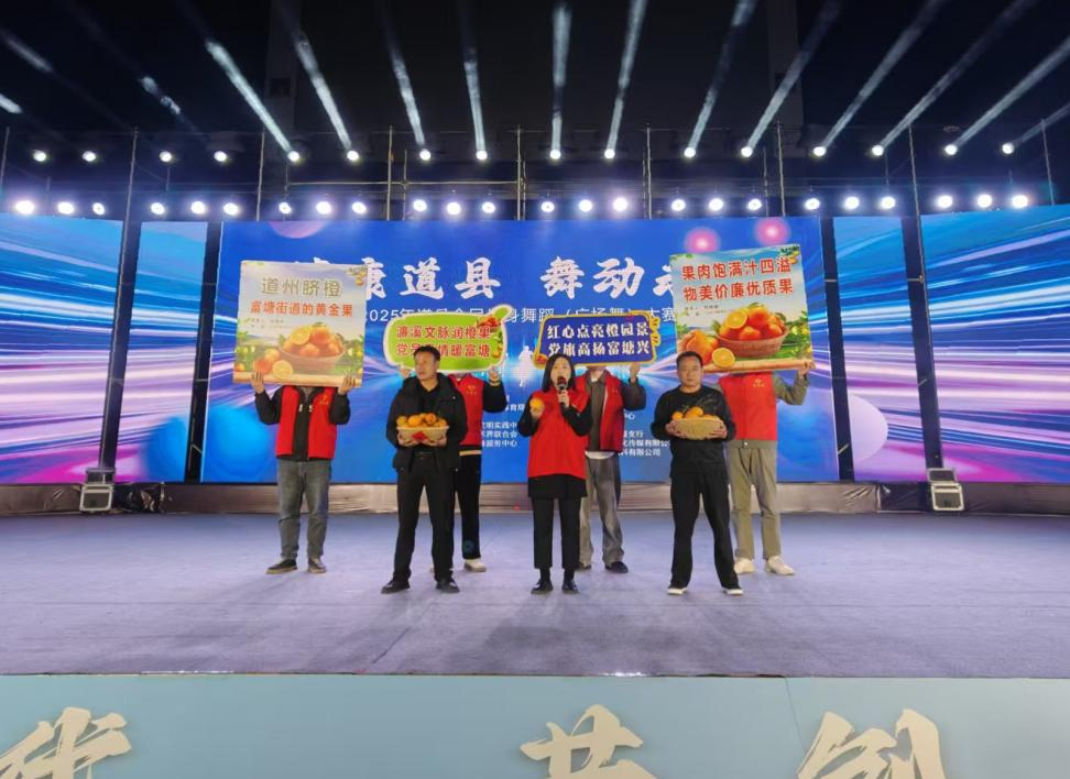 以橙为媒,助农惠民。道县富塘街道巧借文化赛事搭台,推动特色农产品宣传推广,既拓宽农产品销路、惠及种植农户,也探索出文旅融合促乡村振兴的基层实践路径。广场舞大赛激昂旋律奏响前,这份来自富塘土地的甘甜,已然成为暖心助农、服务民生的生动注脚。
