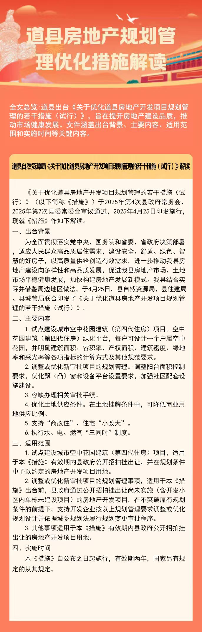 道县自然资源局关于《关于优化道县房地产开发项目规划管理的若干措施(试行)》的政策解读