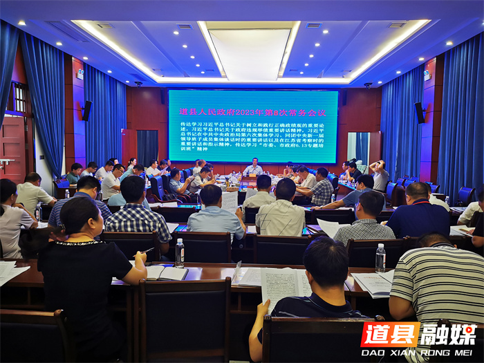 7月18日下午,道县县委副书记、县长唐超学主持召开2023年道县人民政府第8次常务会议。会议深入学习贯彻习近平总书记关于树立和践行正确政绩观的重要论述和严禁统计造假、严控地方政府债务风险的重要指示批示精神,传达落实市委市政府专题培训班会议精神,推动全县各级各部门牢固树立和扎实践行正确价值观,把智慧和力量凝聚到推动道县高质量发展上来。