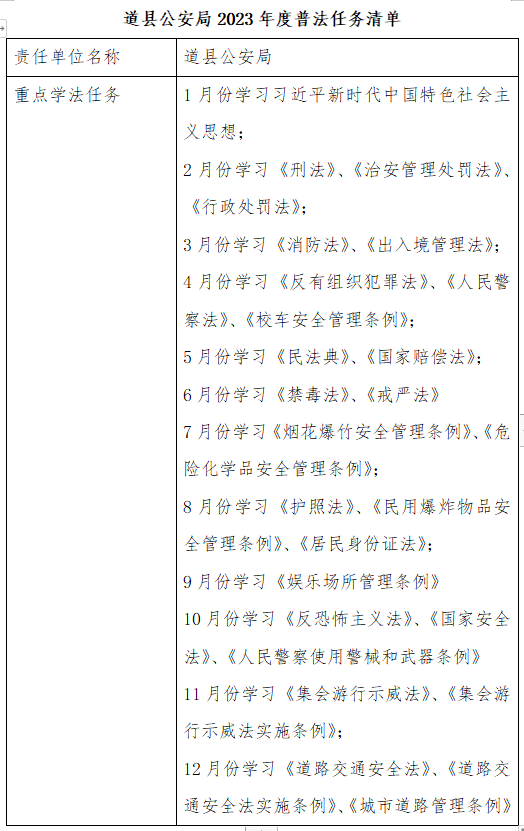 道县公安局2023年度普法任务清单