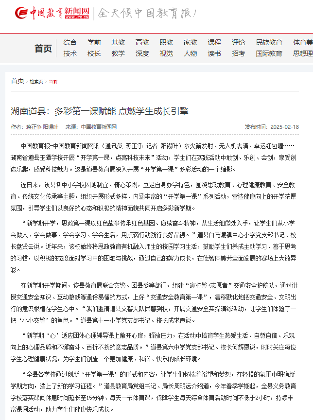 【中国教育新闻网】湖南道县:多彩第一课赋能 点燃学生成长引擎
