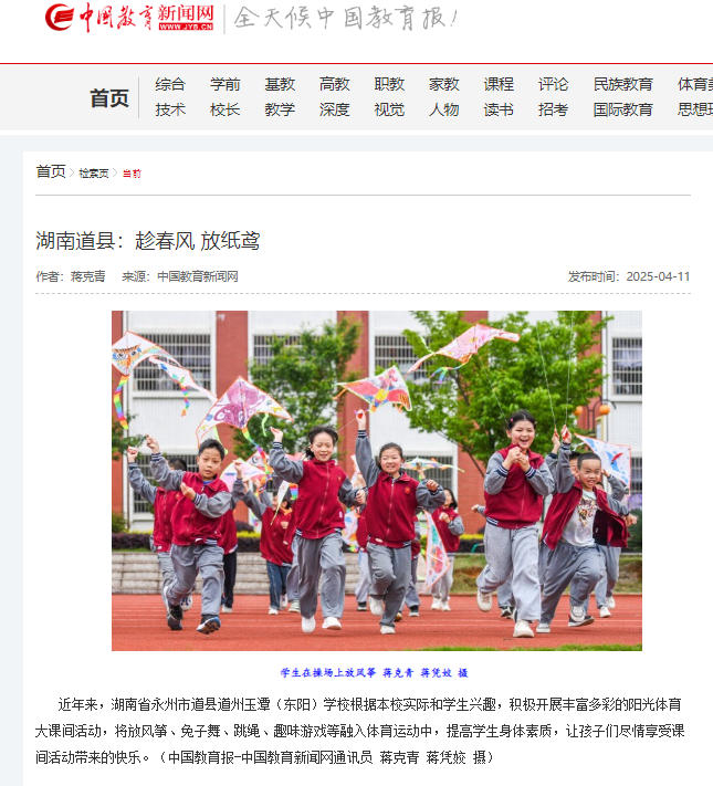 【中国教育新闻网】湖南道县:趁春风 放纸鸢