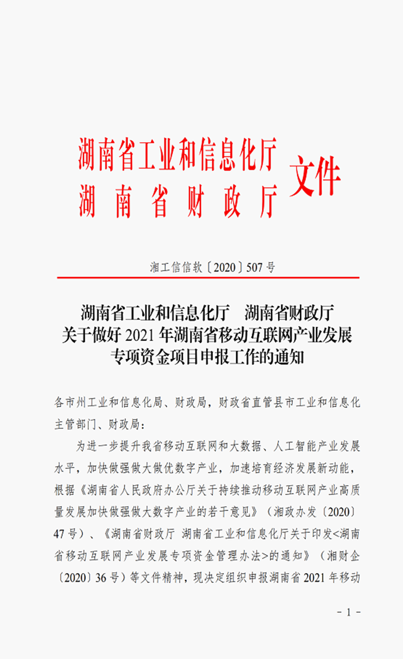 关于做好2021年湖南省移动互联网产业发展专项资金项目申报工作的通知+(盖章)