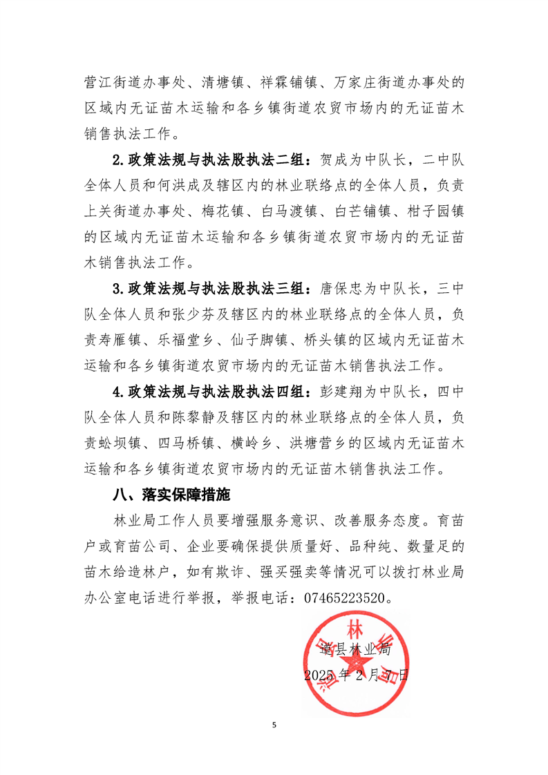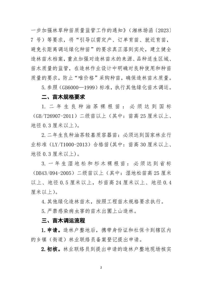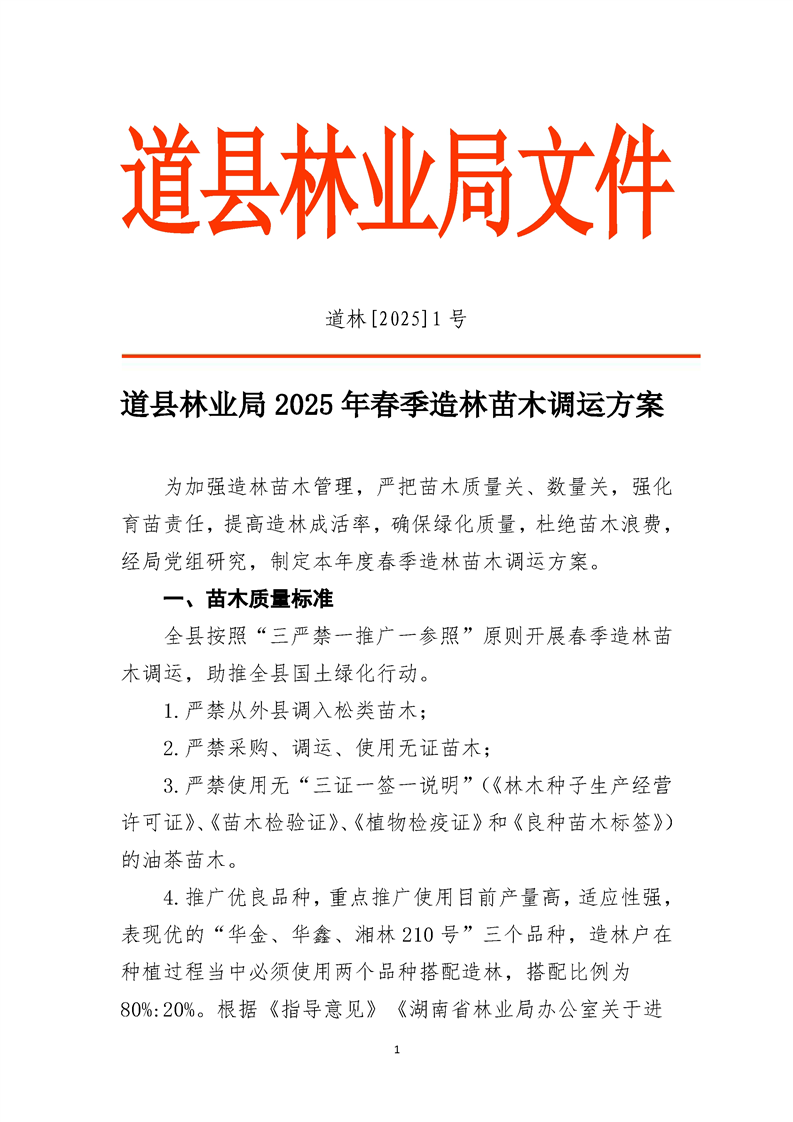 道县林业局2025年春季造林苗木调运方案